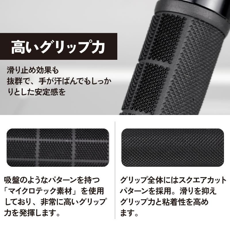 指にかかるグリップ裏面には、吸盤のようなパターンを持つ「マイクロテック素材」を使用しており、クッション性が良く非常に高いグリップ力を発揮します。