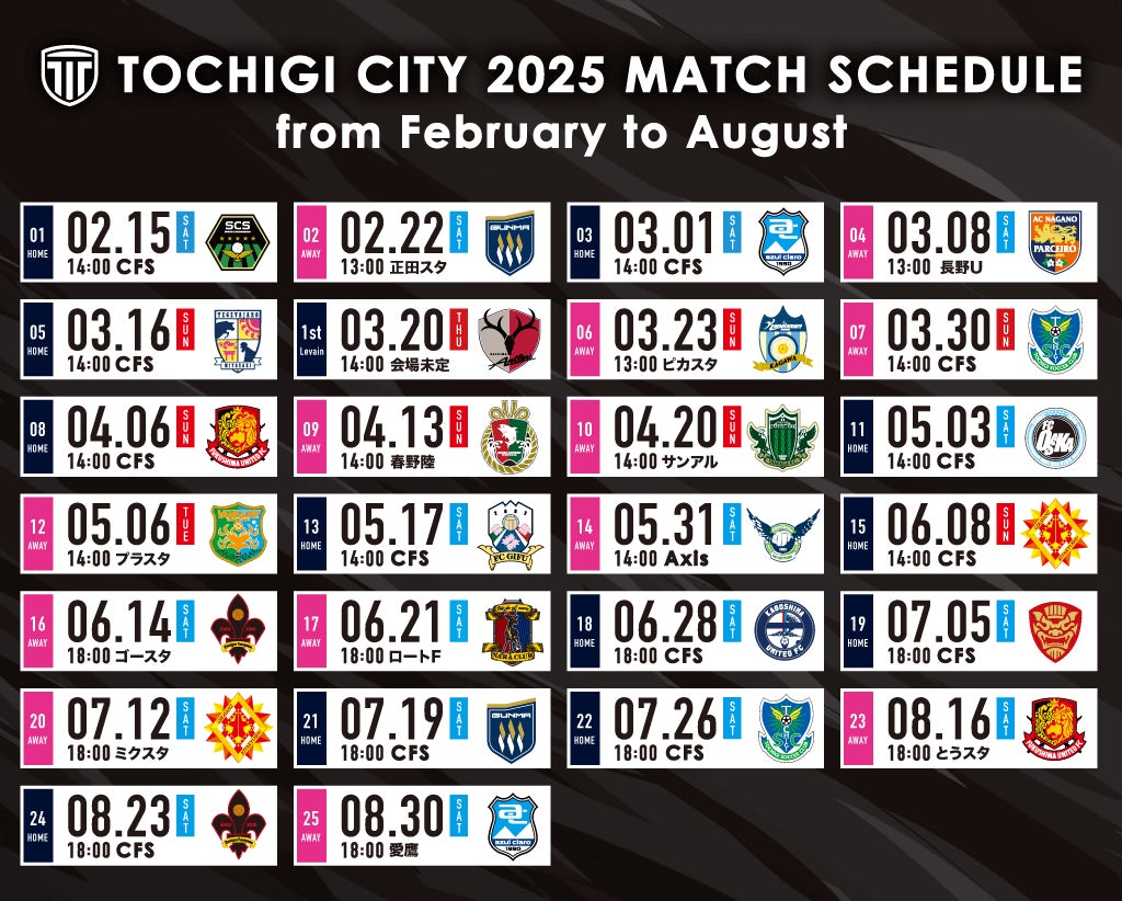 栃木市・壬生町をホームタウンとし、足利市と包括連携協定を結び栃木県南地域を中心に活動を広げる栃木シティ。2023年に全国地域SCLで優勝を飾りJFL昇格を決め、2025シーズンからはJリーグに参入。