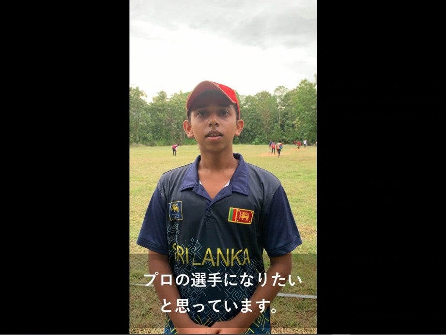 今回の近藤選手の成績連動型寄付の取り組みに際し、昨年8月、スリランカの子どもたちから、応援メッセージ入りのクリケットのバットと子どもからのメッセージ動画をプレゼント。6500km離れた異国の地から、近藤選手へエールを届けました。