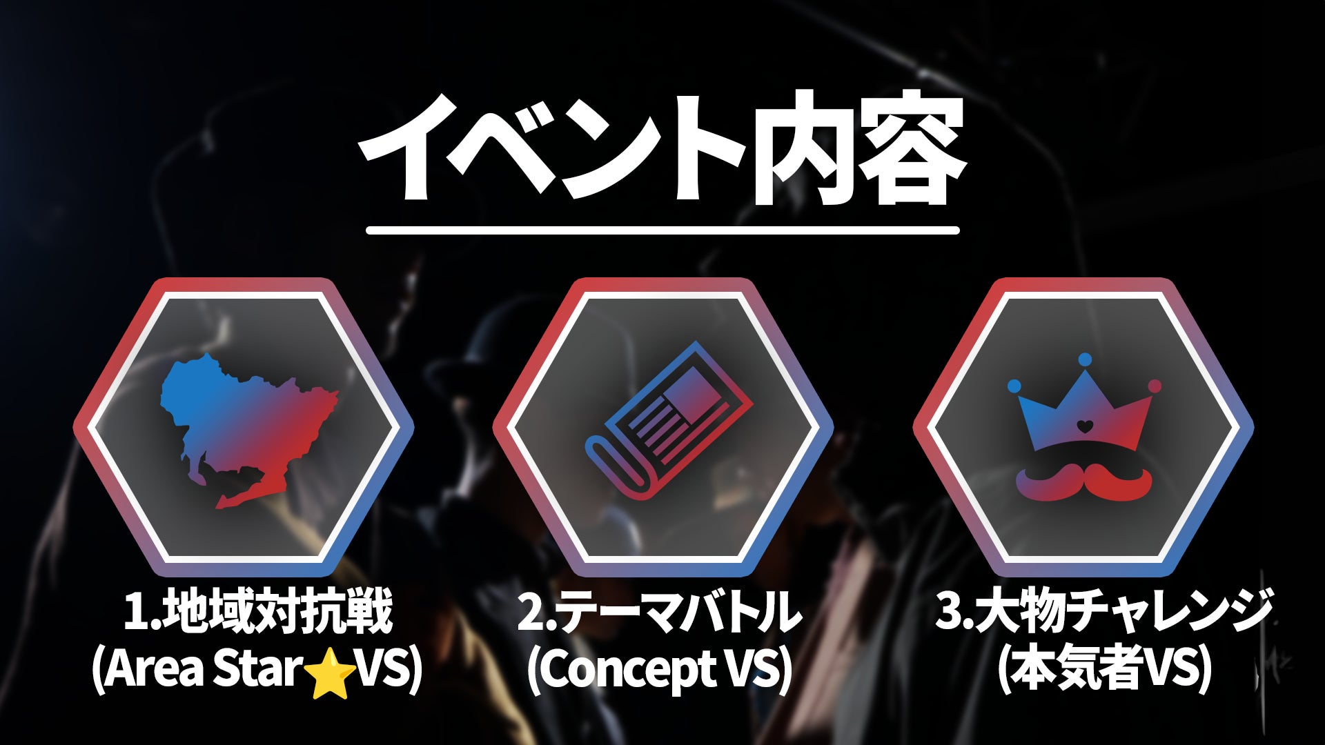 『VS~VERSUS~』では、ダンスの審査基準や評価基準が難しかったダンスバトルの常識を覆し、ダンス初心者の方々や一般の方々が観ても、心からダンスを楽しんでもらえるようなダンスイベントを目指します。