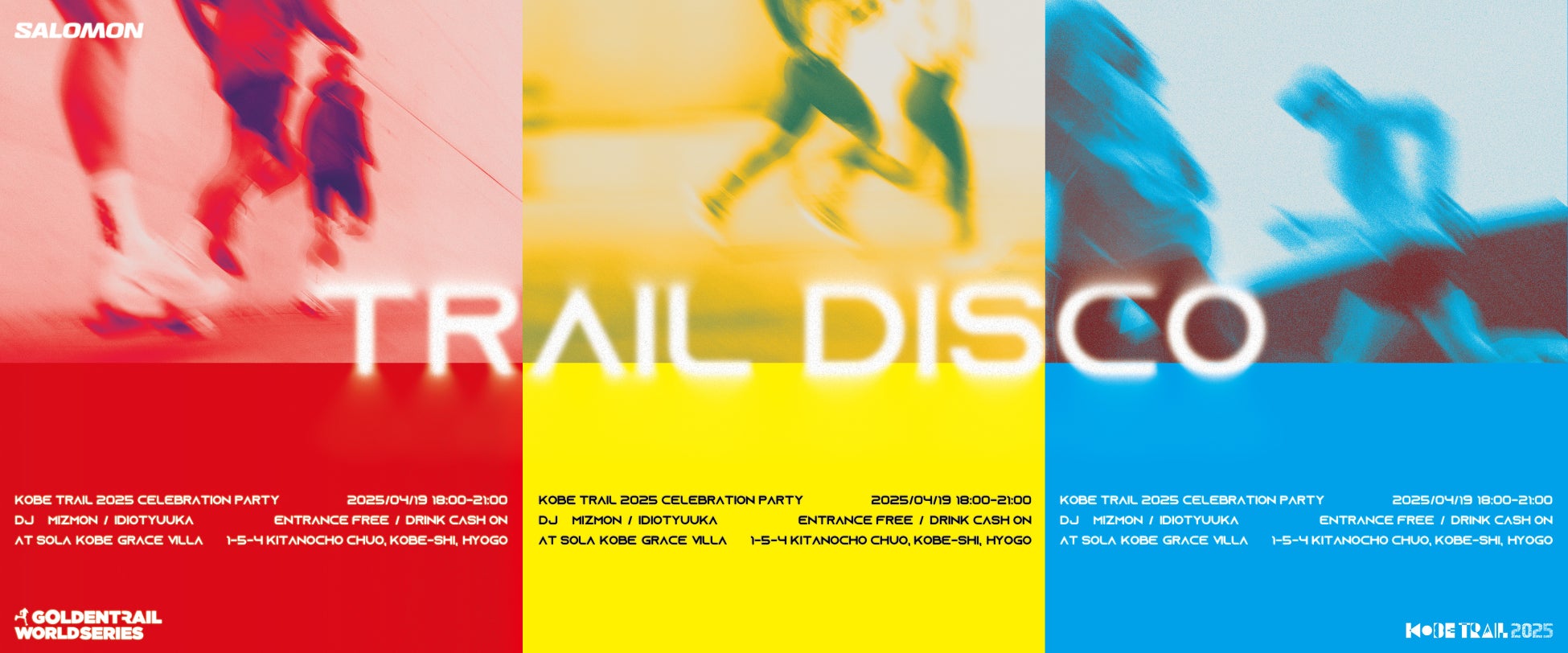 また、「TRAIL DISCO(トレイル・ディスコ)」は、「KOBE TRAIL2025」のレセプションパーティーとして、4月19日(土)のレース終了後に、新神戸駅近くのSOLA KOBE(ソラ神戸)にて開催致します。