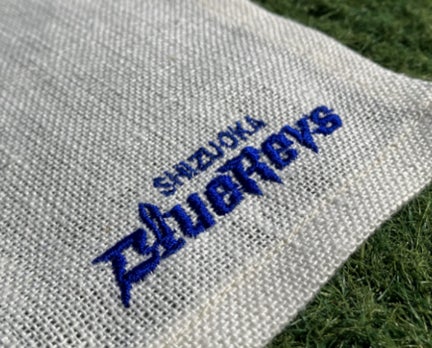 上品なコラボリネンハンカチが登場。麻の風合いにこだわり、少し固めの遠州織物で作られたリネンハンカチに静岡ブルーレヴズのロゴが刺繍されています。「育てるハンカチ」がコンセプトの通り、はじめは固めの素材感でも、使い込むほどに柔らかく、風合いの変化も楽しめるハンカチとなっています。普段使いにも、ちょっとしたギフトにもおすすめです。