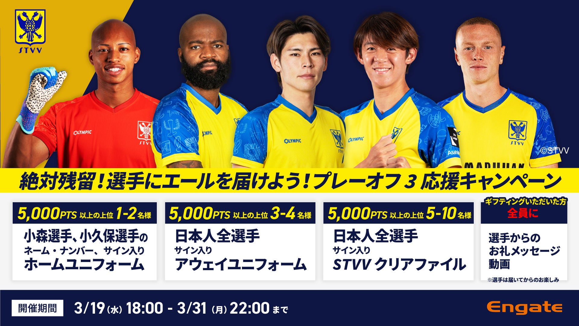 STVVは、2025年3月19日(水)より、スポーツギフティングサービス「Engate」にて「絶対残留!選手にエールを届けよう!プレーオフ3応援キャンペーン」を開催することをお知らせいたします。