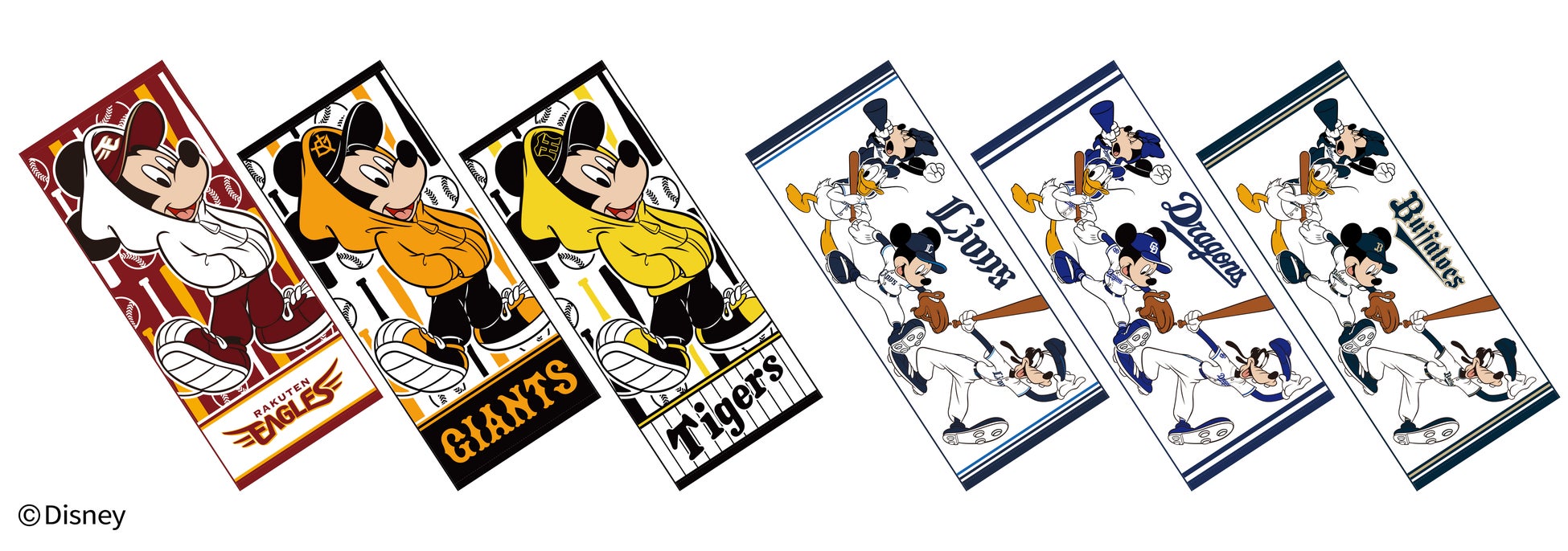 「ミッキー&フレンズ」が球団ユニフォームを着た限定デザインで登場。Tシャツやタオル、トートバッグなどファン必見のアイテムが続々登場!