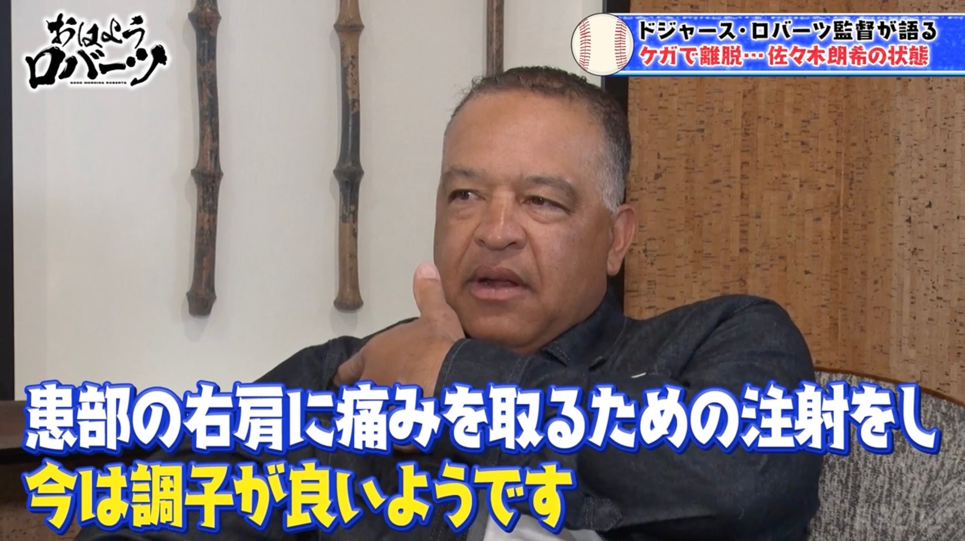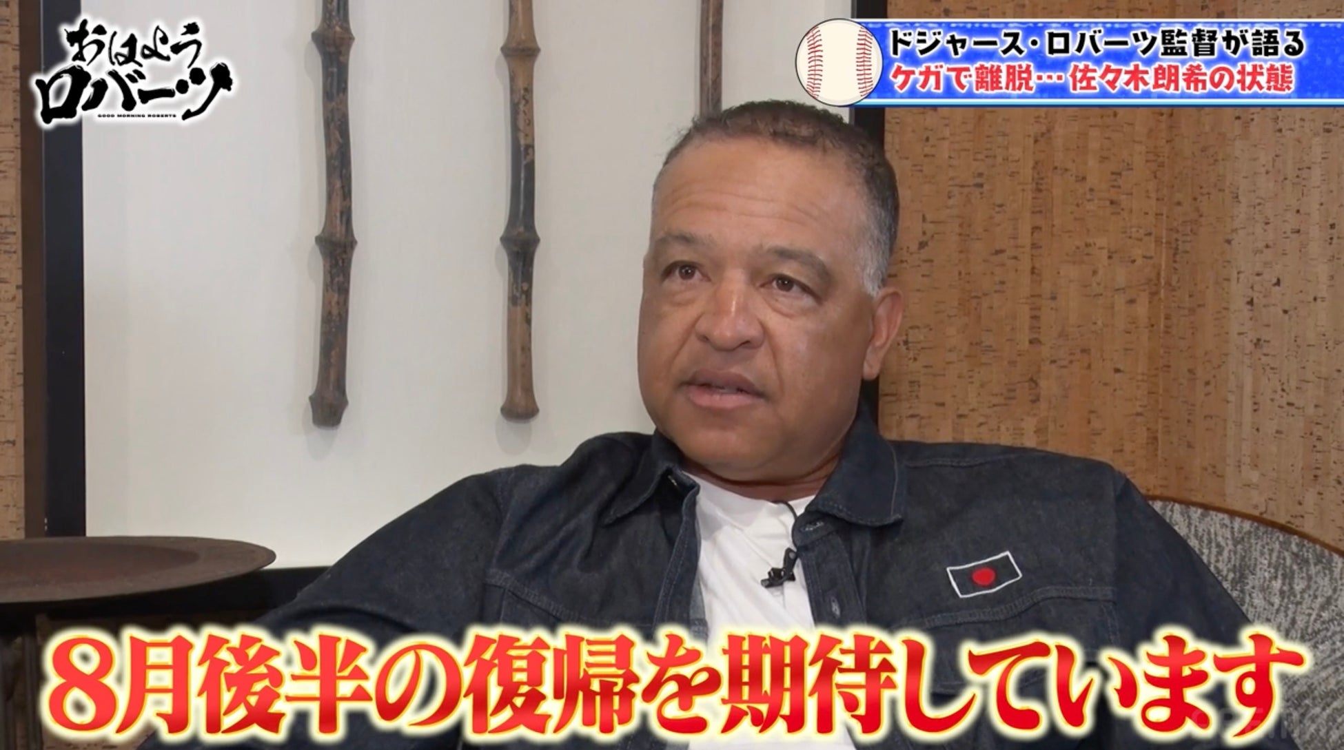さらに、6月末の復帰予定が一転し、今季は構想外という報道も出ている佐々木朗希選手の話題も。「投球時の痛みが完全に消えることはありませんでした。患部の右肩に痛みを取るための注射をし、今は調子が良いようです」と、佐々木選手の状態を語ったロバーツ監督は、「復帰時期はわかりませんが 私の希望としては8月中でしょうか。8月後半の復帰を期待しています」と佐々木選手の復帰時期についても言及しました。