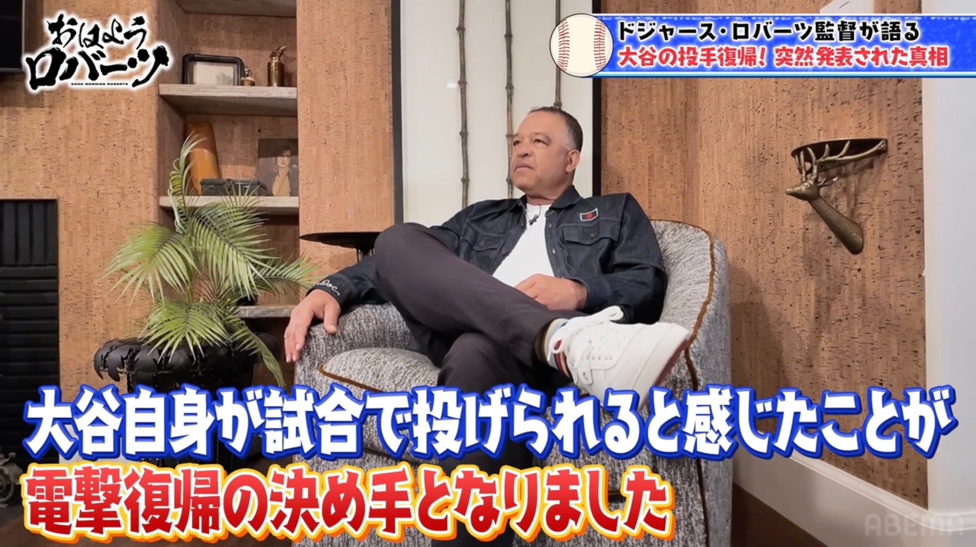 新しい未来のテレビ「ABEMA(アベマ)」は、大谷翔平、ベッツ、フリーマンをはじめ、多くのスター選手が所属するロサンゼルス・ドジャースを率いて昨シーズンのワールドチャンピオンに導いた名将、デーブ・ロバーツ氏への「ABEMA」独占のインタビュー企画『おはようロバーツ』を、2025年6月23日(月)朝8時より放送いたしました。(https://abema.tv/video/episode/239-209_s30_p12)