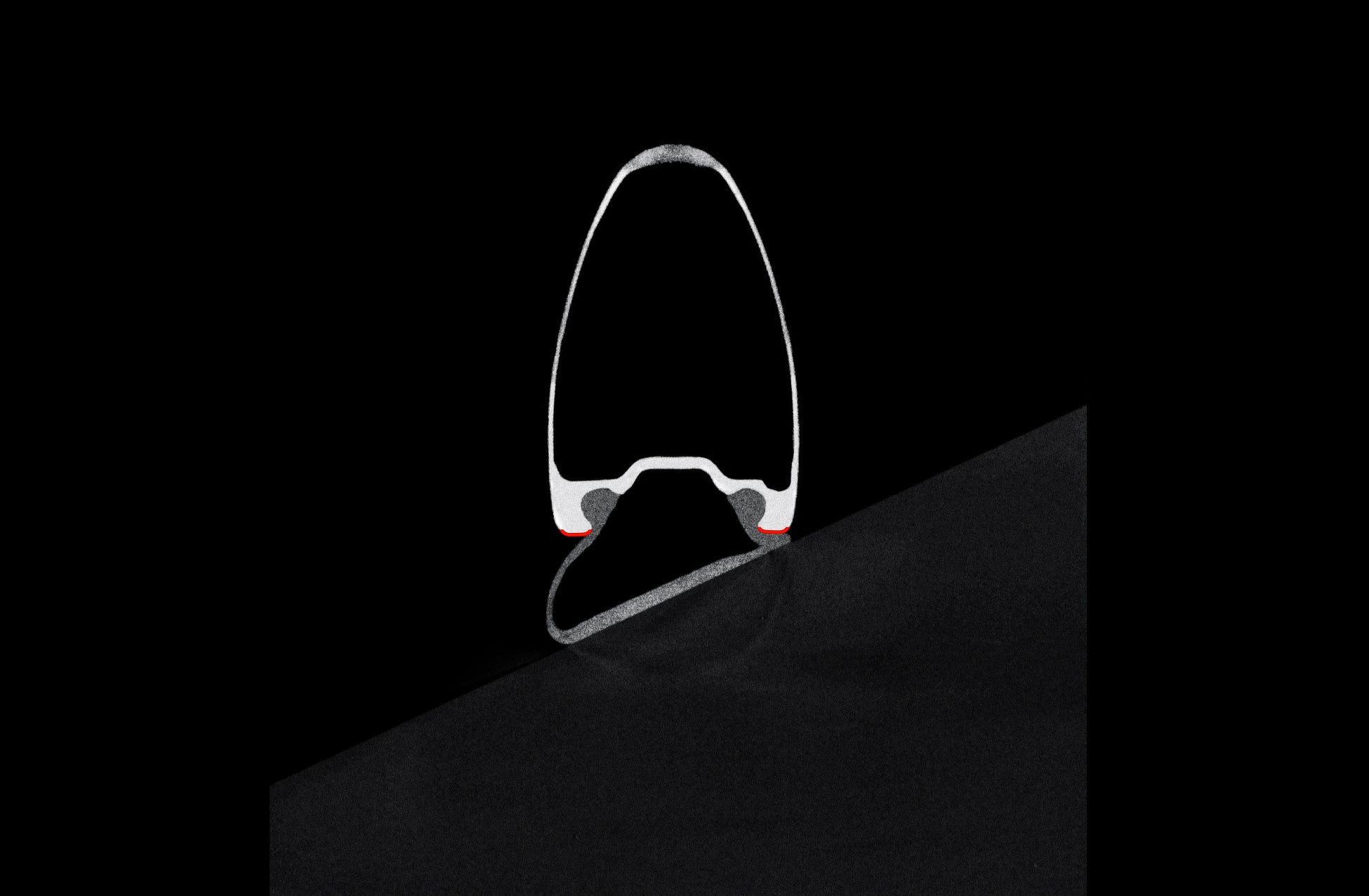 リムの開発では膨大な数のプロトタイプを作り、タイヤとリムの理想の幅を見つけ、転がり抵抗が最も低くなるようにしただけでなく、パンクしたとしても、タイヤがリムのビードから外れず安全に停止できるようにしました。こうして得たデータから、リムの内幅を21mm、外幅を29mmに決め、ビードフックの幅を広めに設けました。また、ビードの曲率を大径化し、タイヤにかかる力をより広範囲に分散。その結果、チューブレスタイヤの保持力はクラス最高となり、リム打ちパンクを生じさせる衝突に39%多く耐えられるようになりました。