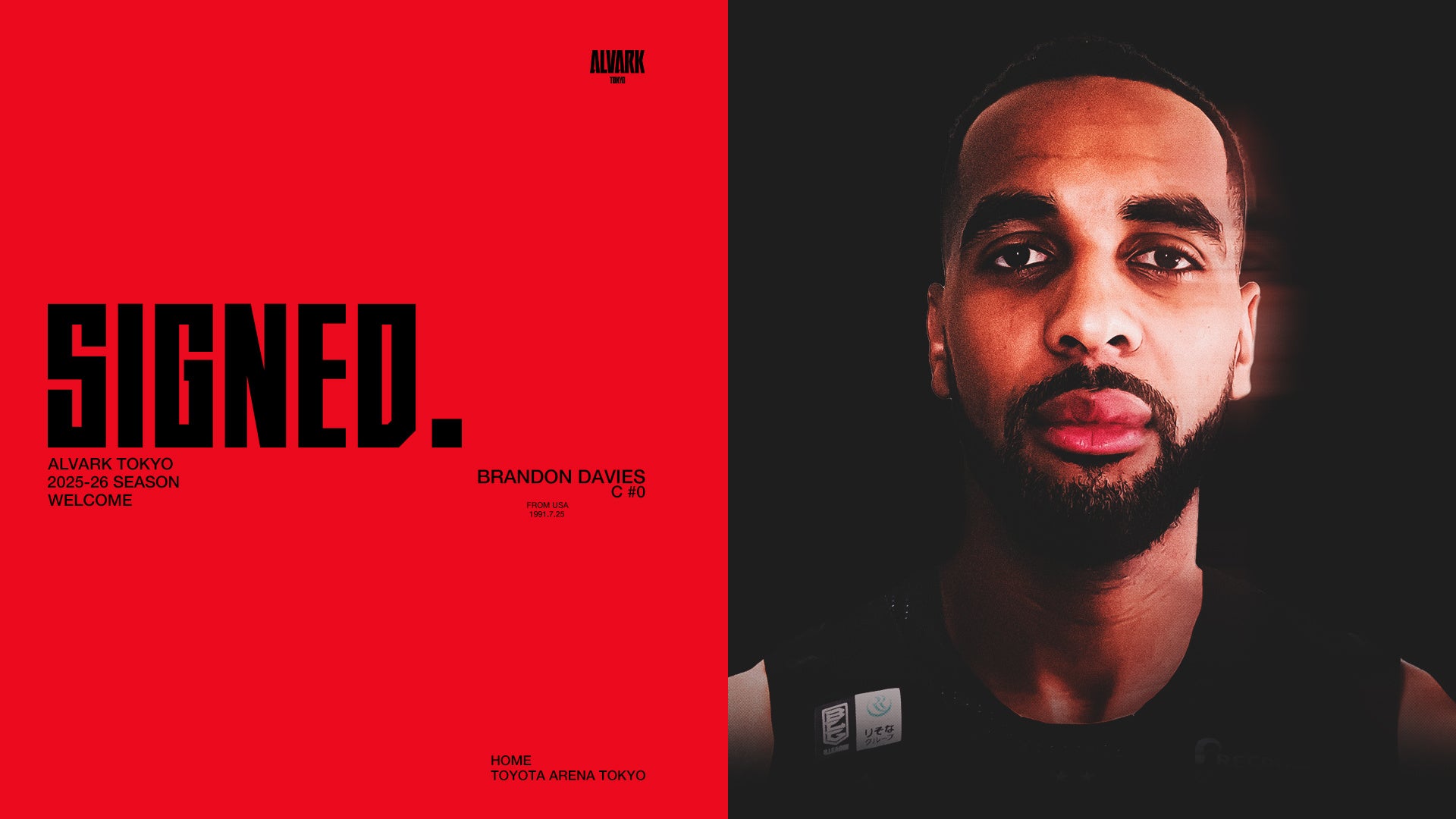 アルバルク東京は、ブランドン・デイヴィス選手との2025-26シーズンの契約(新規)が決定しましたのでお知らせいたします。