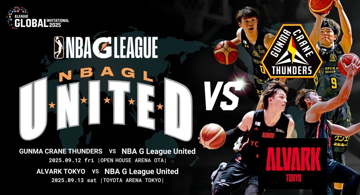 2025-26シーズン開幕に先立ち、9月12日(金)にOPEN HOUSE ARENA OTAにてB.LEAGUE GLOBAL INVITATIONAL 2025 群馬クレインサンダーズ vs NBA G League United を開催することが決定しました!
