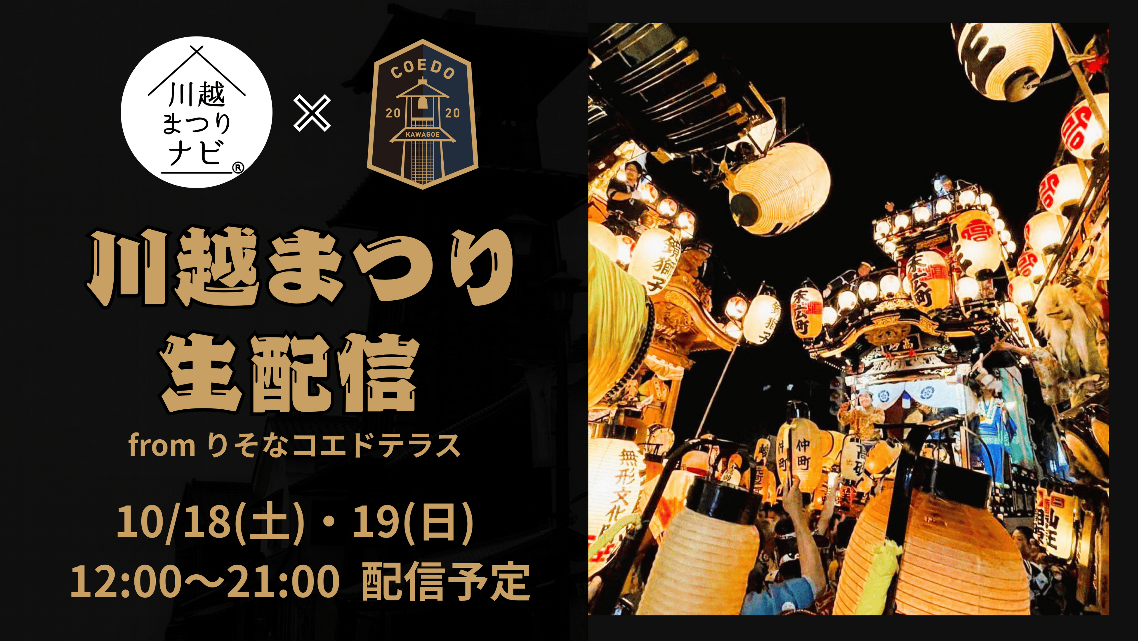 埼玉県川越市からJリーグを目指す「COEDO KAWAGOE F.C」を運営するCOEDO KAWAGOE F.C株式会社(所在:埼玉県川越市、代表取締役:有田 和生)は、「川越まつりナビ」(運営:株式会社タカインフォテクノ)と連携し、川越の象徴である川越まつりを2日間にわたりCOEDO KAWAGOE F.Cの公式YouTubeアカウントにてお祭りのライブ配信を行います。