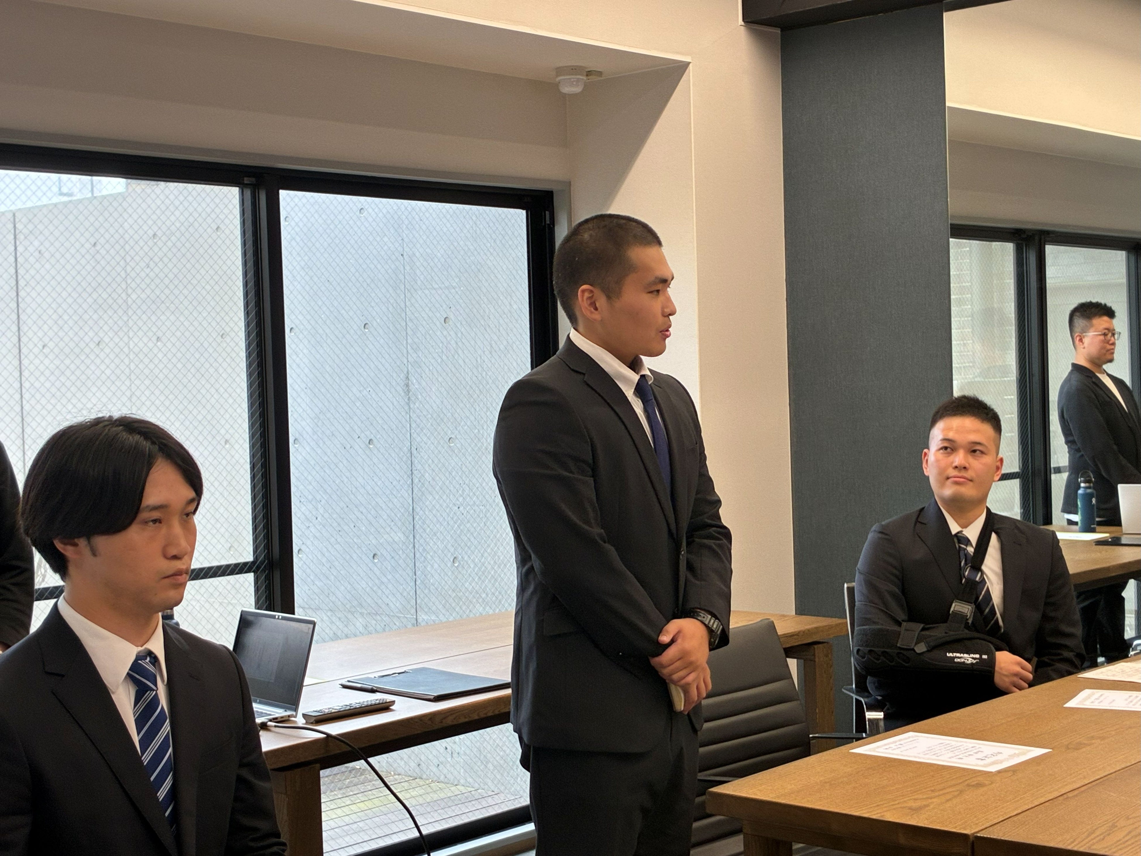 当社は2025年度に初めて新卒社員を採用し、今年で2回目の新卒採用となります。式には内定者3名が出席し、緊張した面持ちながらも期待に胸を膨らませていました。