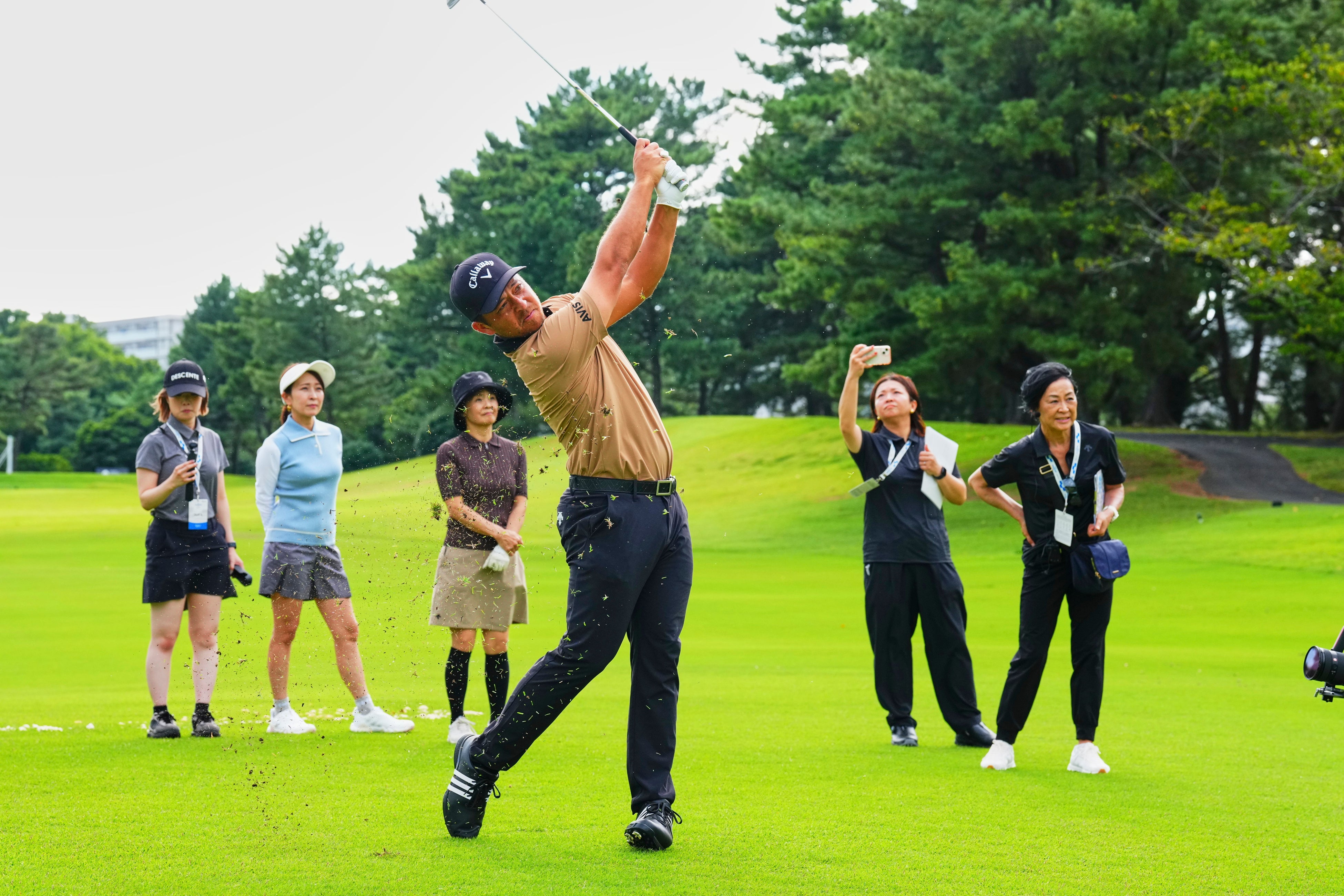 イベントの目玉、シャウフェレ選手とのラウンドでは、シャウフェレ選手がまずお手本として圧巻のショットを披露すると、参加者からは感嘆の声が沸き起こりました。その後ラウンドの合間にそれぞれシャウフェレ選手に質問をしたり、一人ひとりが丁寧なアドバイスを受けながらプレーするなど、参加者全員がプレミアムなひと時を過ごしました。ラウンド後の懇親会では記念撮影やサイン会を実施し、参加者にとってかけがえのない思い出と、ゴルフへの新たなモチベーションに繋がる一日となりました。