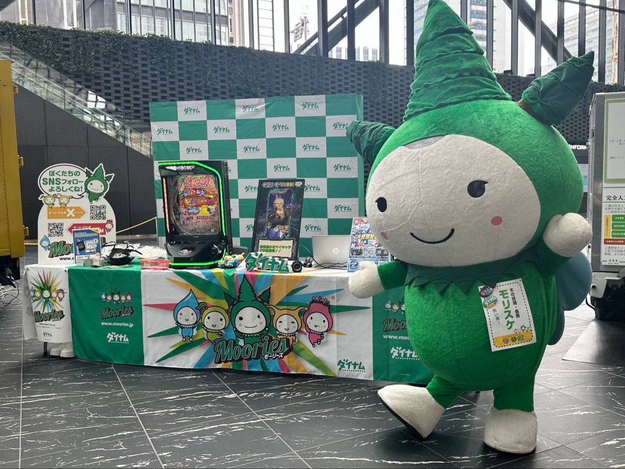 大会期間中は、ダイナムグループ公式キャラクター「モーリーズ」のイベントブースを展開いたします。モーリーズブースでは、ダイナムとコムシード社が業務連携のもと、リリースした新作バーチャルホールアプリ「スロパチスピリット」をダウンロードすることで参加できる無料のゲームアトラクションを実施予定です。会場へお越しの際には、ぜひ当社のイベントブースにもお立ち寄りください。