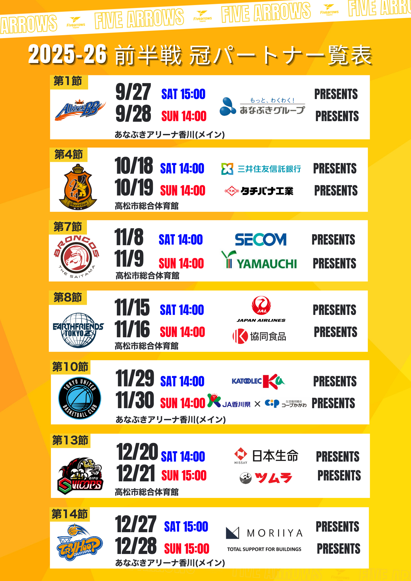 2025-26シーズン前半戦の冠パートナーが確定しましたのでお知らせいたします。