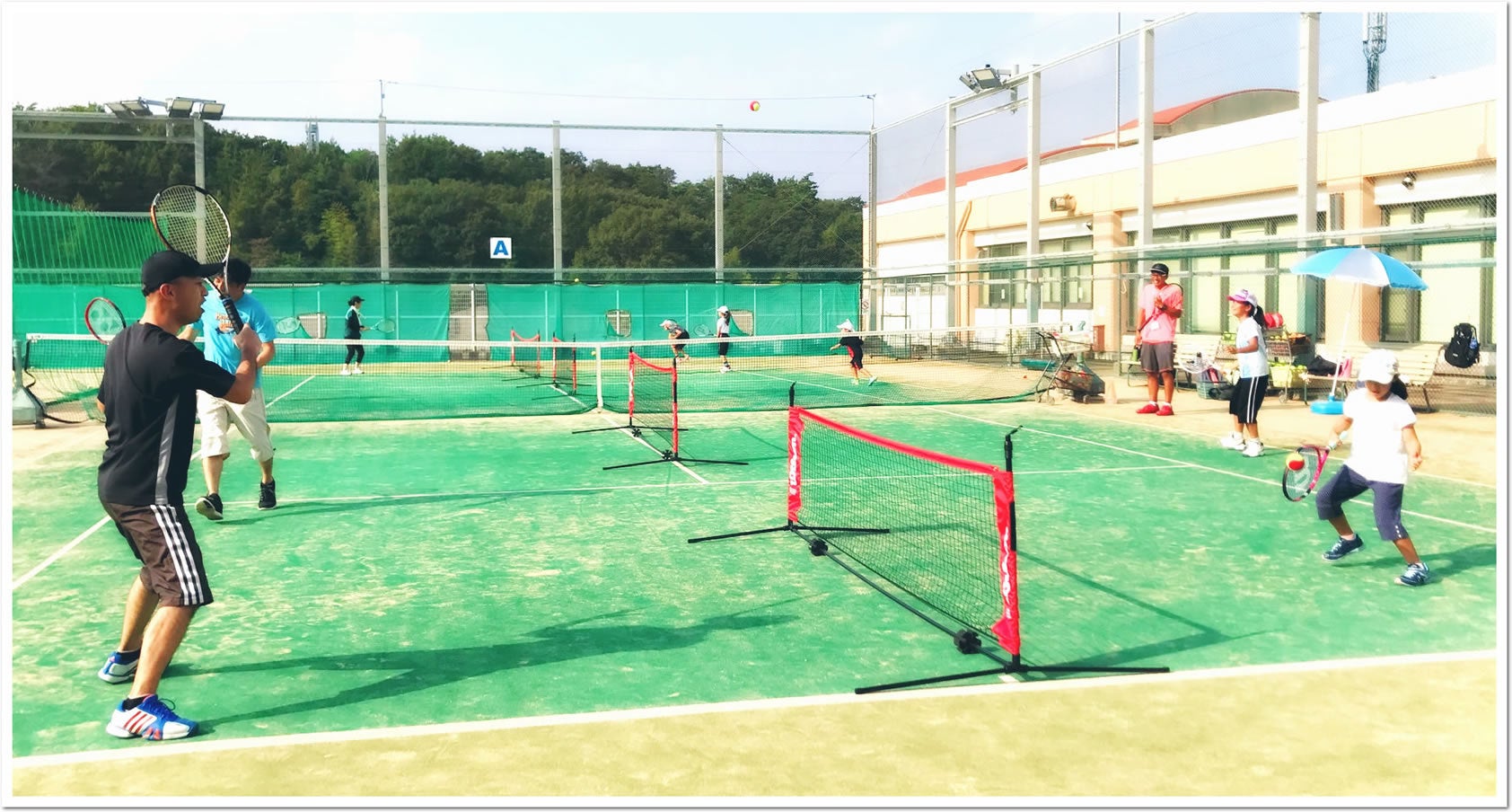 広くて安全なテニスコートで、久しぶりに親子で楽しく体を動かしてみませんか?