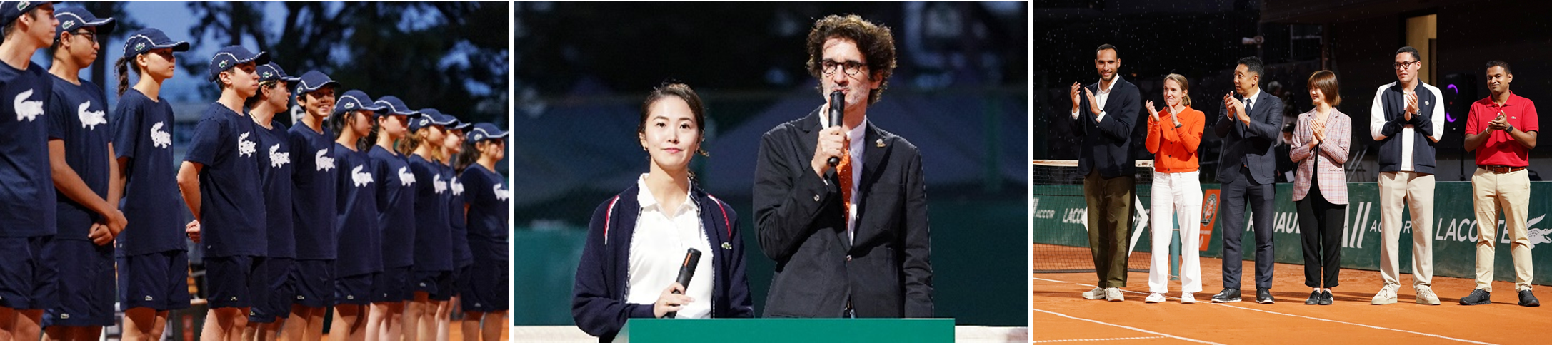 表彰式には、トーナメントアンバサダーを務めた元世界女王のジャスティン・エナン氏も登壇。選手たちの健闘を称えるスピーチを行い、大会のフィナーレを華やかに締めくくりました。 エナン氏は、「今夜は本当にうれしく、そしてこの大会のアンバサダーであることを誇りに思います。 優勝した2名の選手、おめでとうございます。しかし同時に、参加してくれたすべてのプレーヤーが、情熱とリスペクトを持って、素晴らしい試合を見せてくれました。この1週間本当に楽しく充実した時間でした。きっと皆さんそれぞれが、この経験から多くを得たはずです。明日からまた練習の日々に戻ると思いますが、夢をつかむために努力を続けてください。そして、この大会を支えてくださったスポンサーの皆様、協会、運営関係者の皆様に心から感謝いたします。ローランギャロスを東京に迎えられたことは、本当に素晴らしいことだと思います。」とコメントしました。