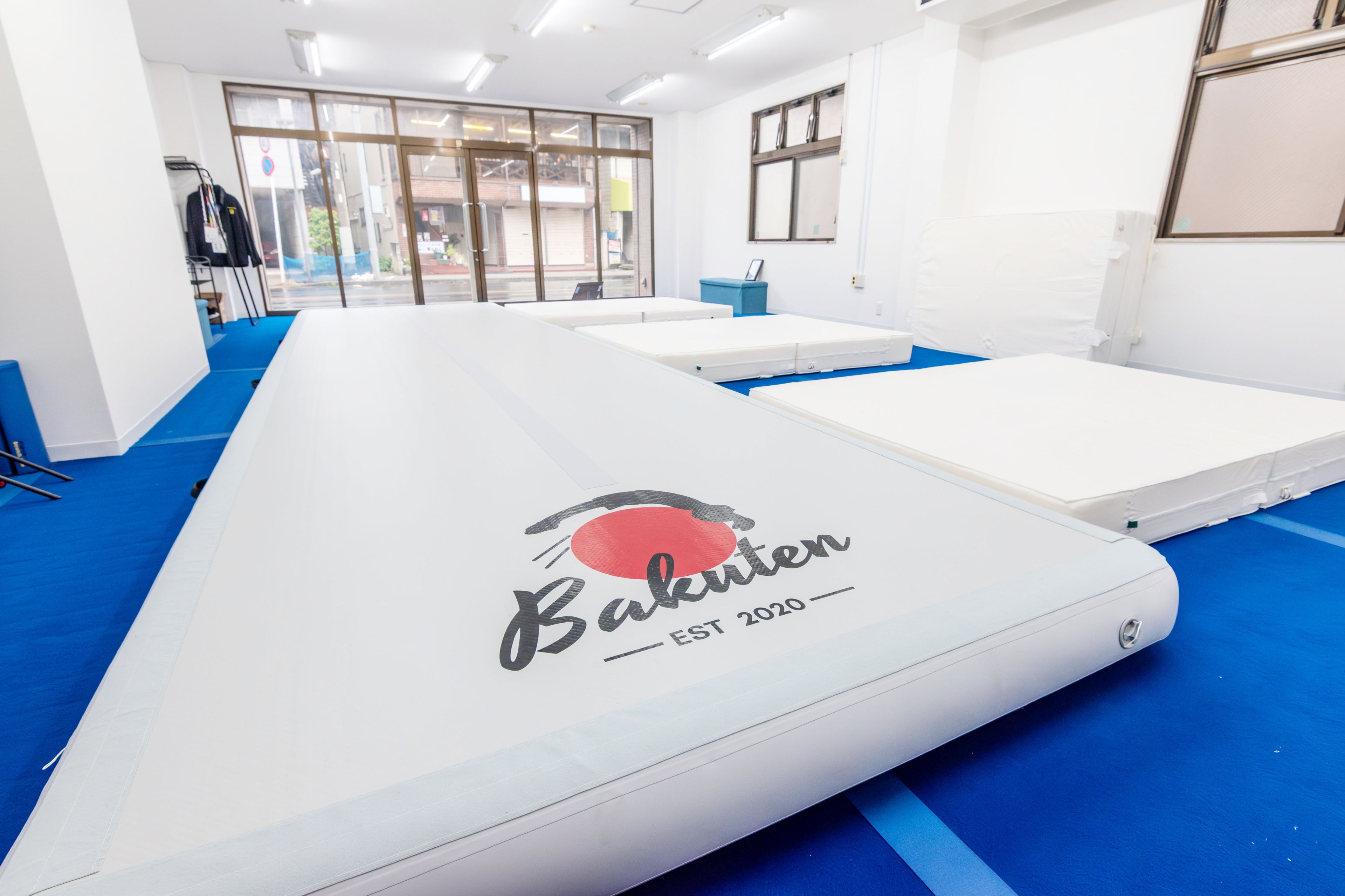 高品質なエアーマット(空気式補助マット)を完備し、初めての技や高度な技でも安心して練習可能