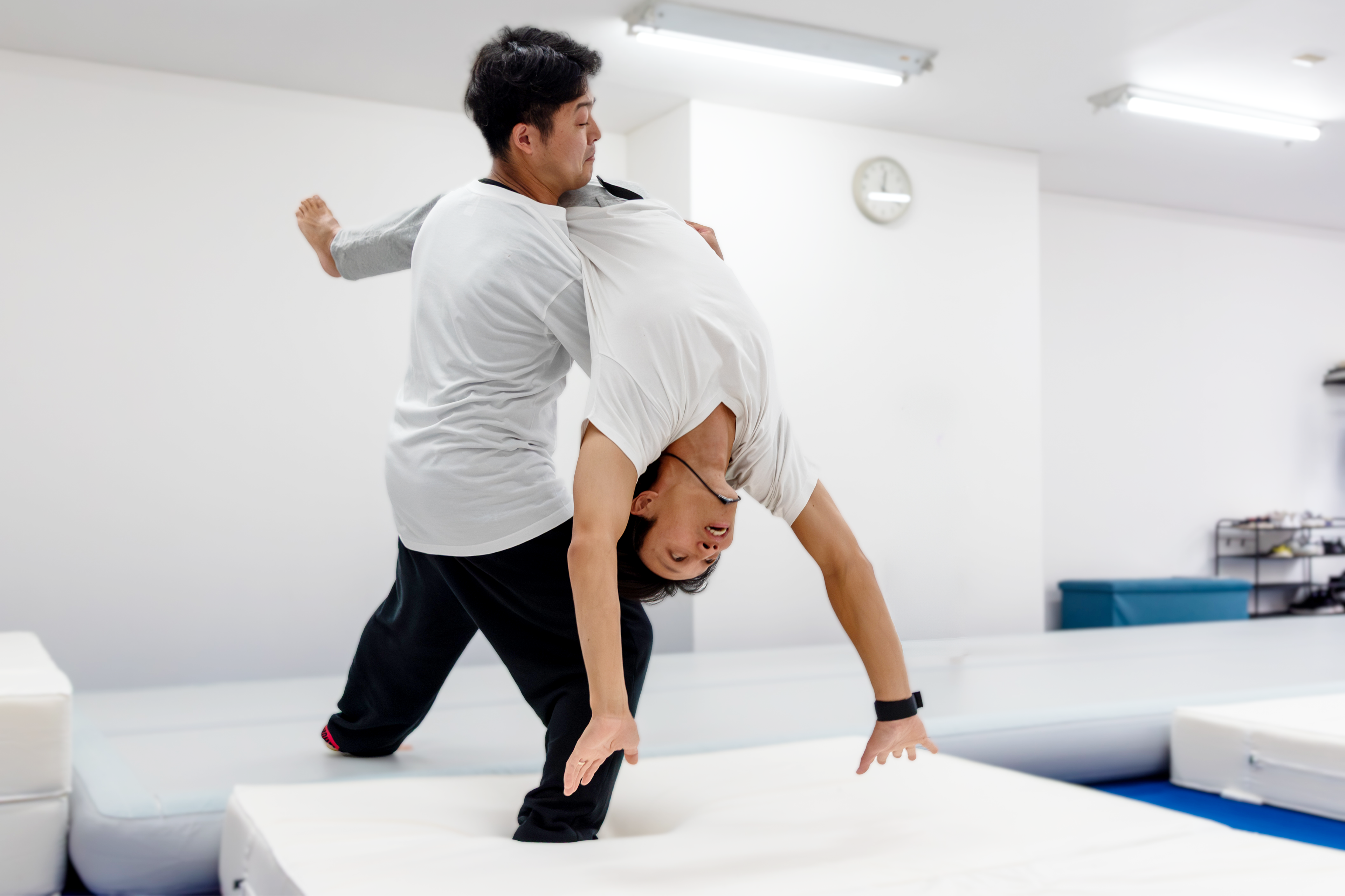 元シルク・ドゥ・ソレイユ出演の実力派インストラクター・柴田 翔平が直接指導。子どもから大人、競技者から初心者まで、“夢だった技”に安全に挑戦できる環境を提供いたします。さらに、市川市内のチアリーディング強豪チームへの技術・安全支援にも注力し、地域のスポーツ文化と教育の発展を目指します。