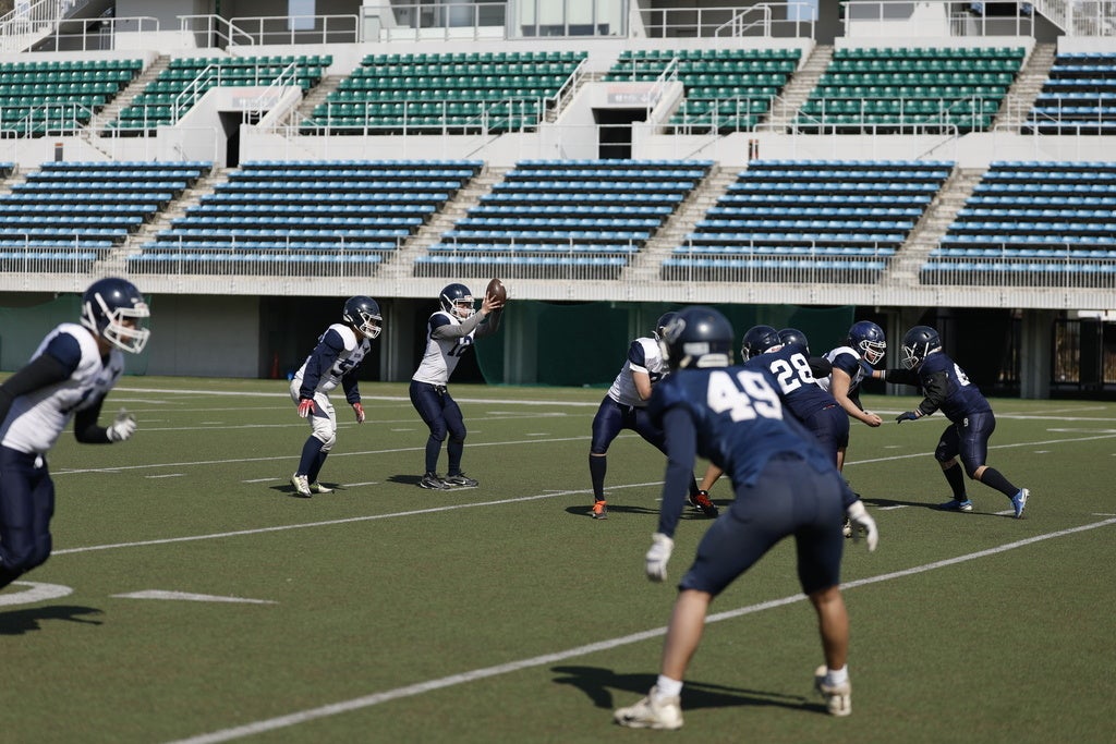[撮影環境] 屋外(アメリカンフットボール場) [撮影距離・角度] 2アングルから同時撮影 [対象の動作] ラン、プレイアクション、オプションプレー、スペシャルプレーなど -
