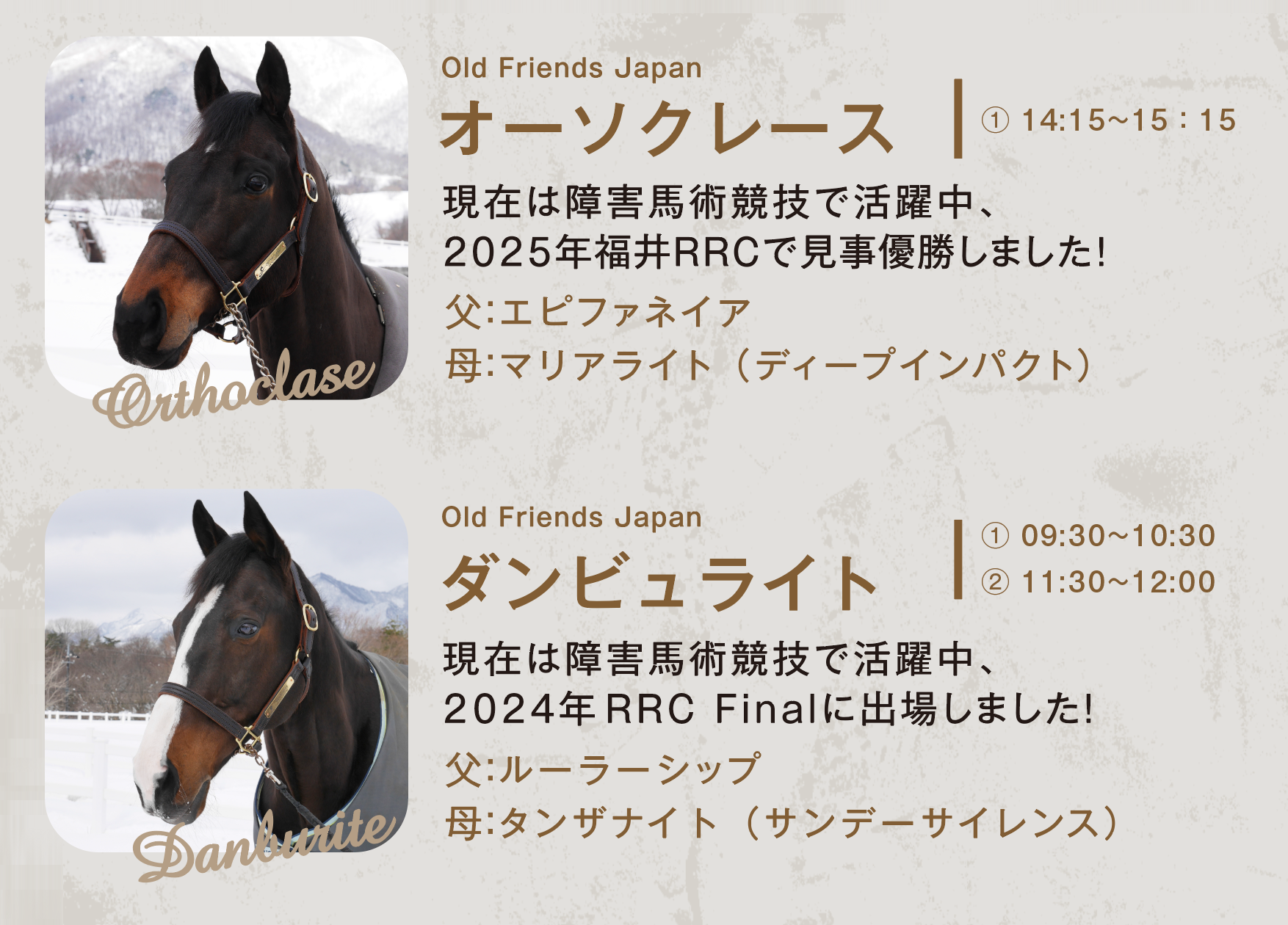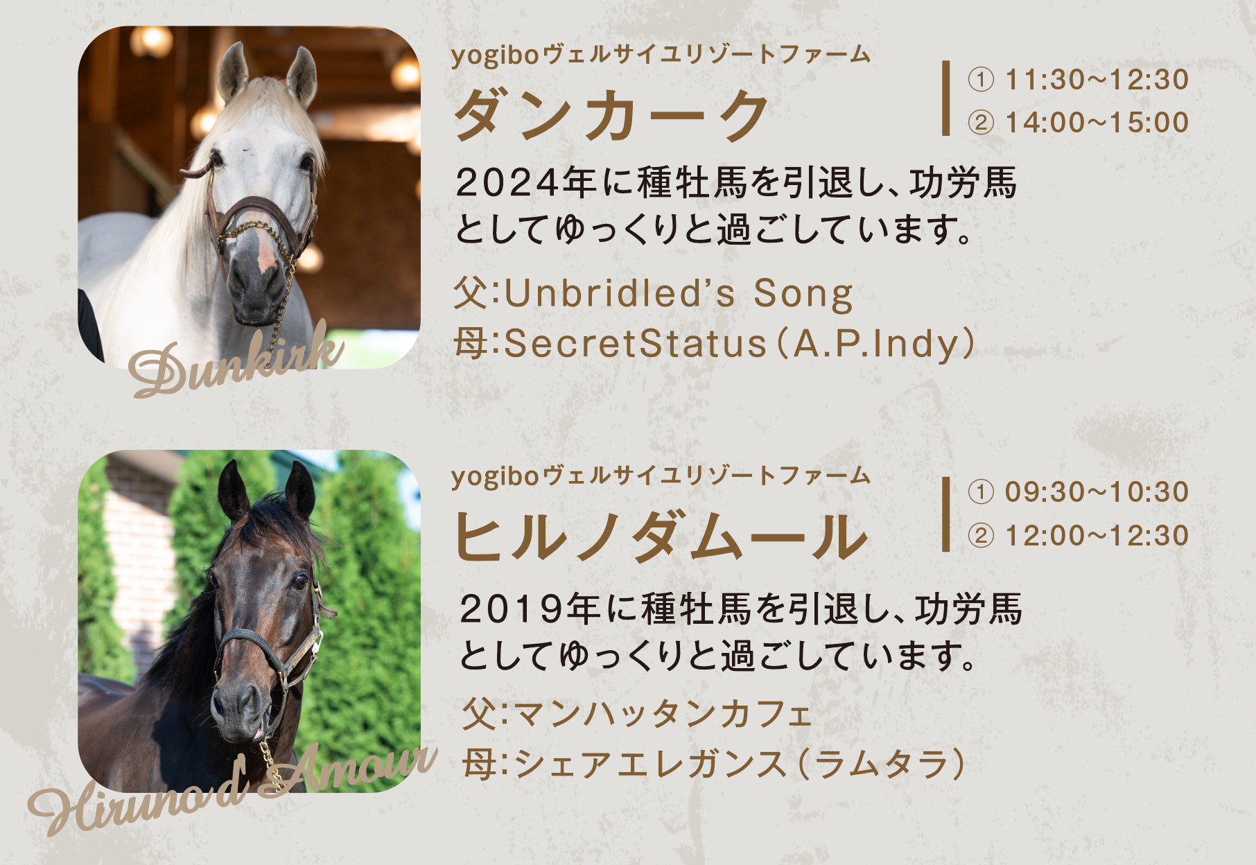 ● 当日の引退競走馬の体調やご機嫌により多少の時間の変更、また、撮影時間を早めに終了することがございます。予めご了承ください。