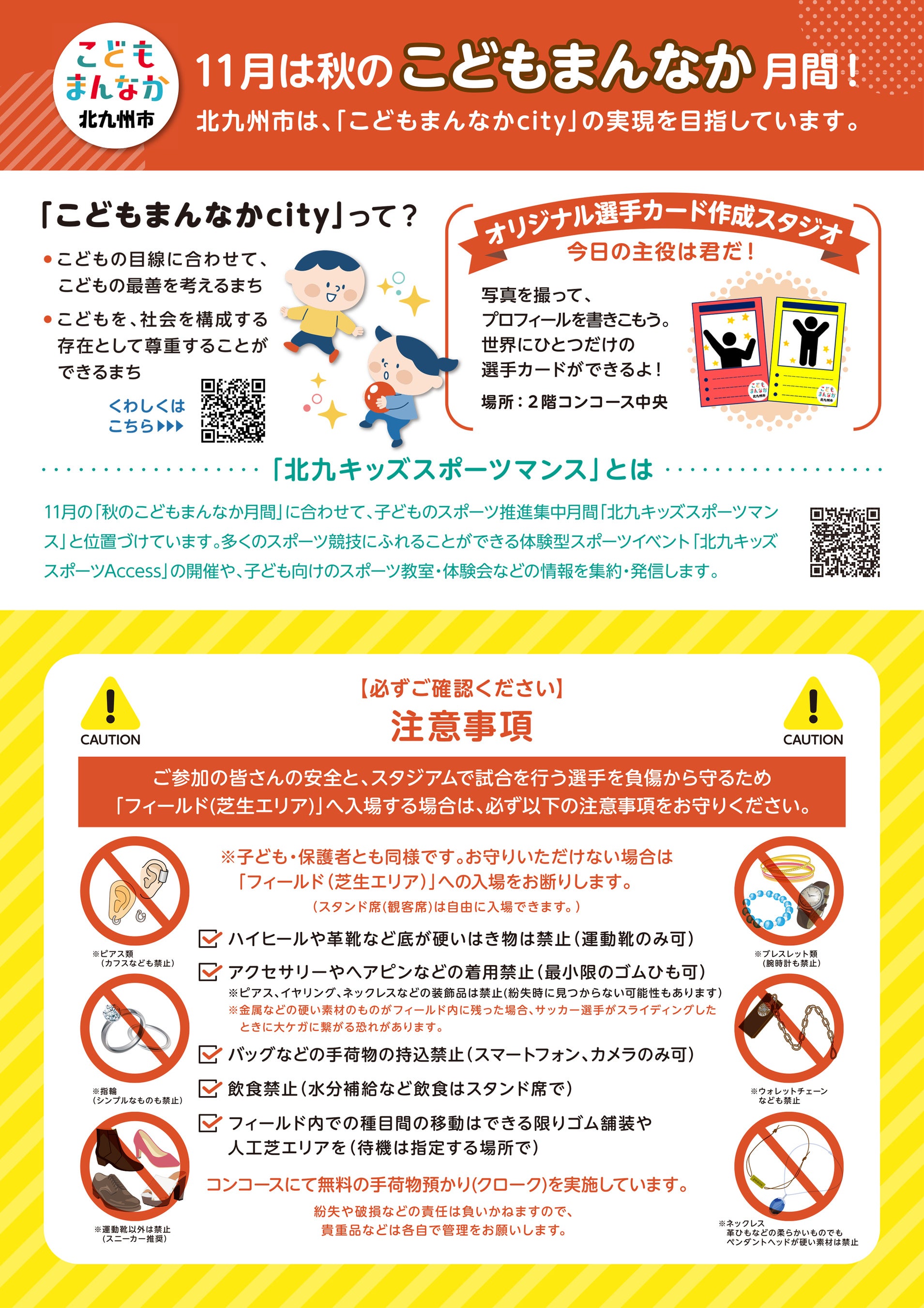 ・対象:北九州市内の年長児(6歳)から小学6年生まで(保護者同伴)※年長未満の小さなお子様でも楽しめる運動遊びコーナーもありますので、ぜひ、ご家族で参加ください!(2歳以上であれば誰でも参加できます)