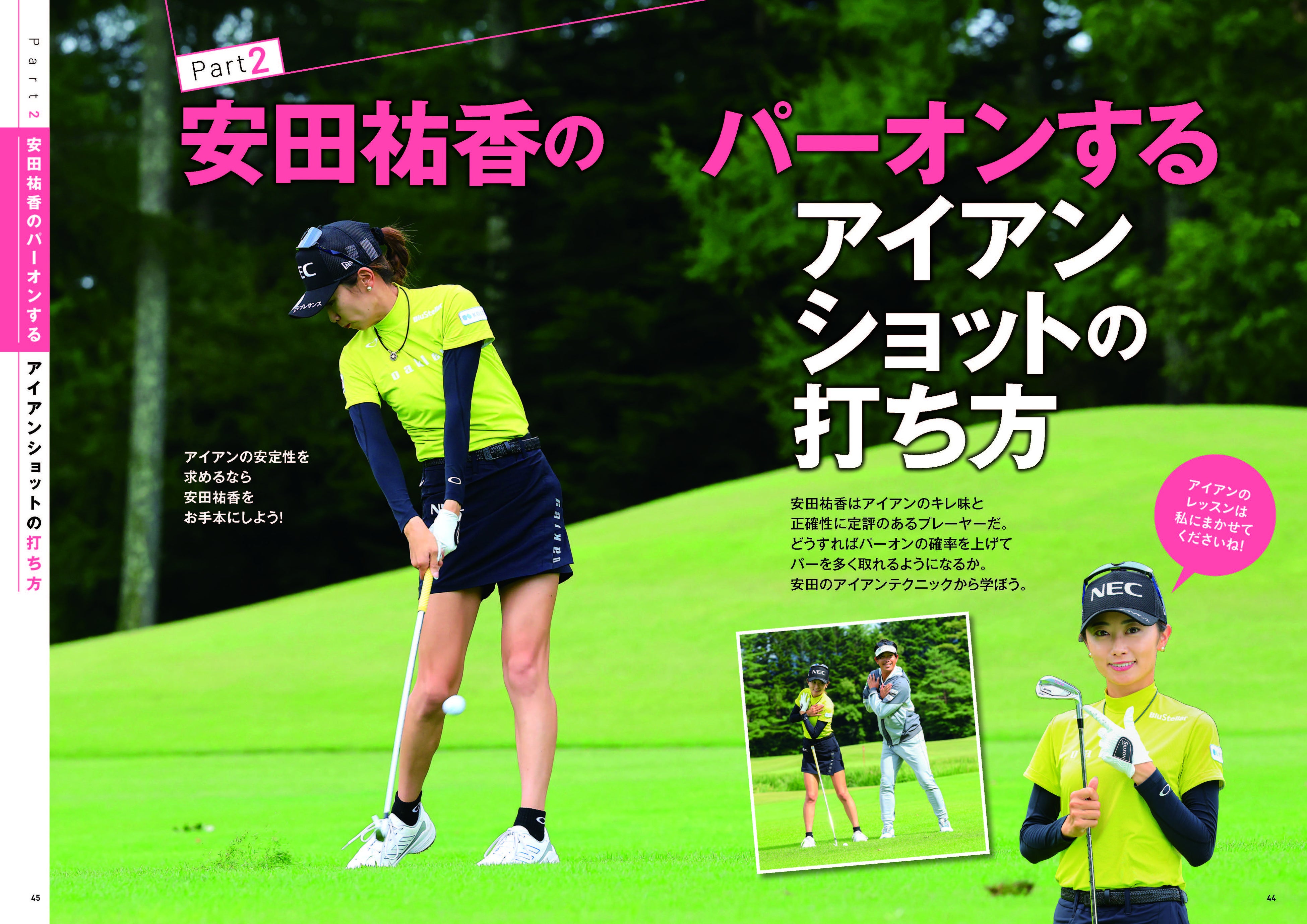 PART2は 安田祐香 のパーオンするアイアンショットの打ち方。読むだけでグリーンへ向かって飛ぶだけではなく、しっかりと止まるキレのあるアイアンショットが打てるようになります。