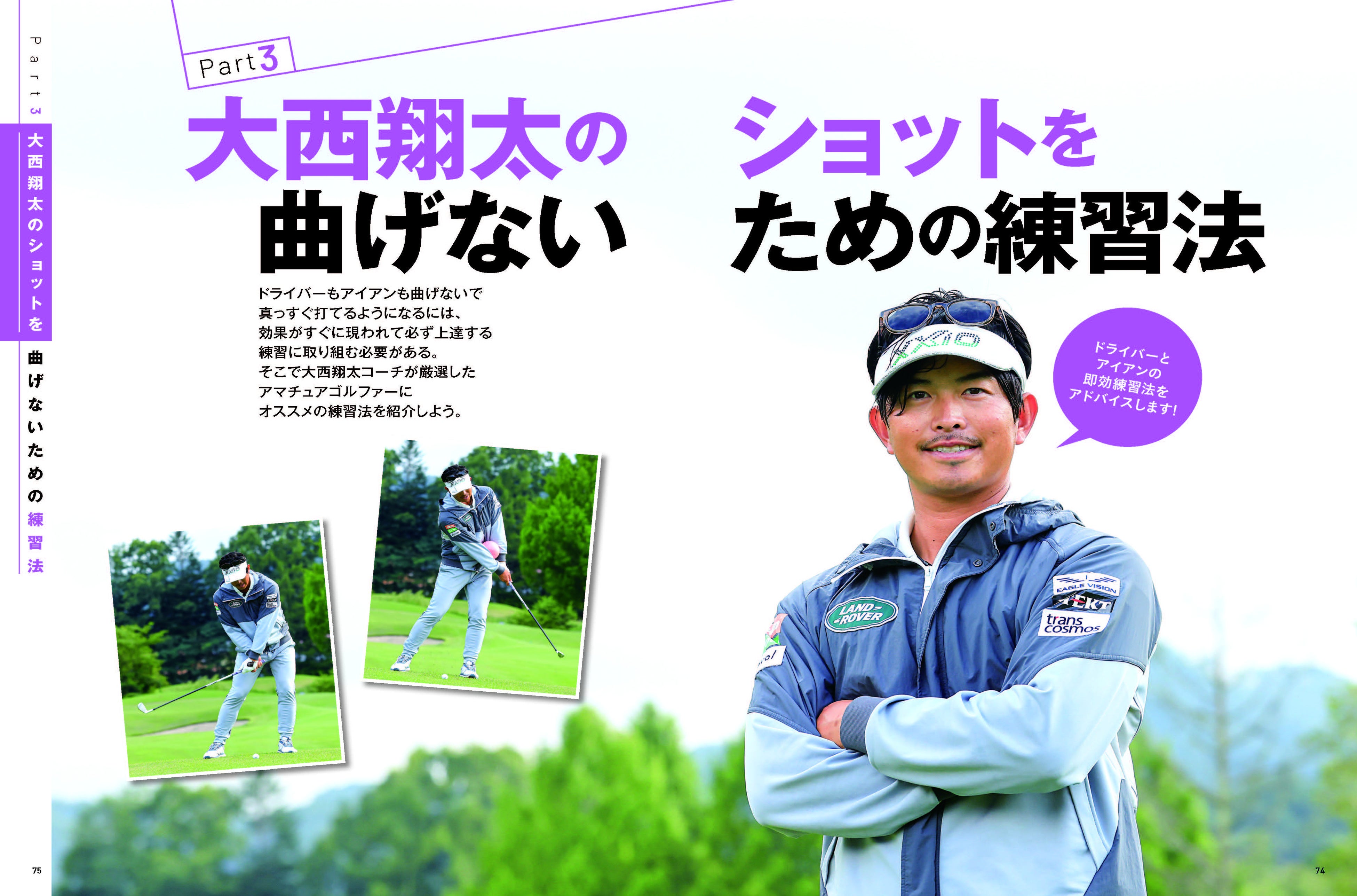 PART3は 大西翔太 のショットを曲げないための練習法。ドライバーとアイアンの基本の動きがマスターできるドリルを紹介。もちろん、この本のために考えてくれたオリジナルです。