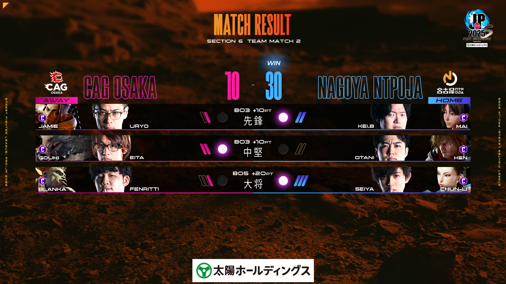 10-30で「名古屋NTPOJA」が勝利。この勝利で2位に浮上。首位争いはさらに激化していく。