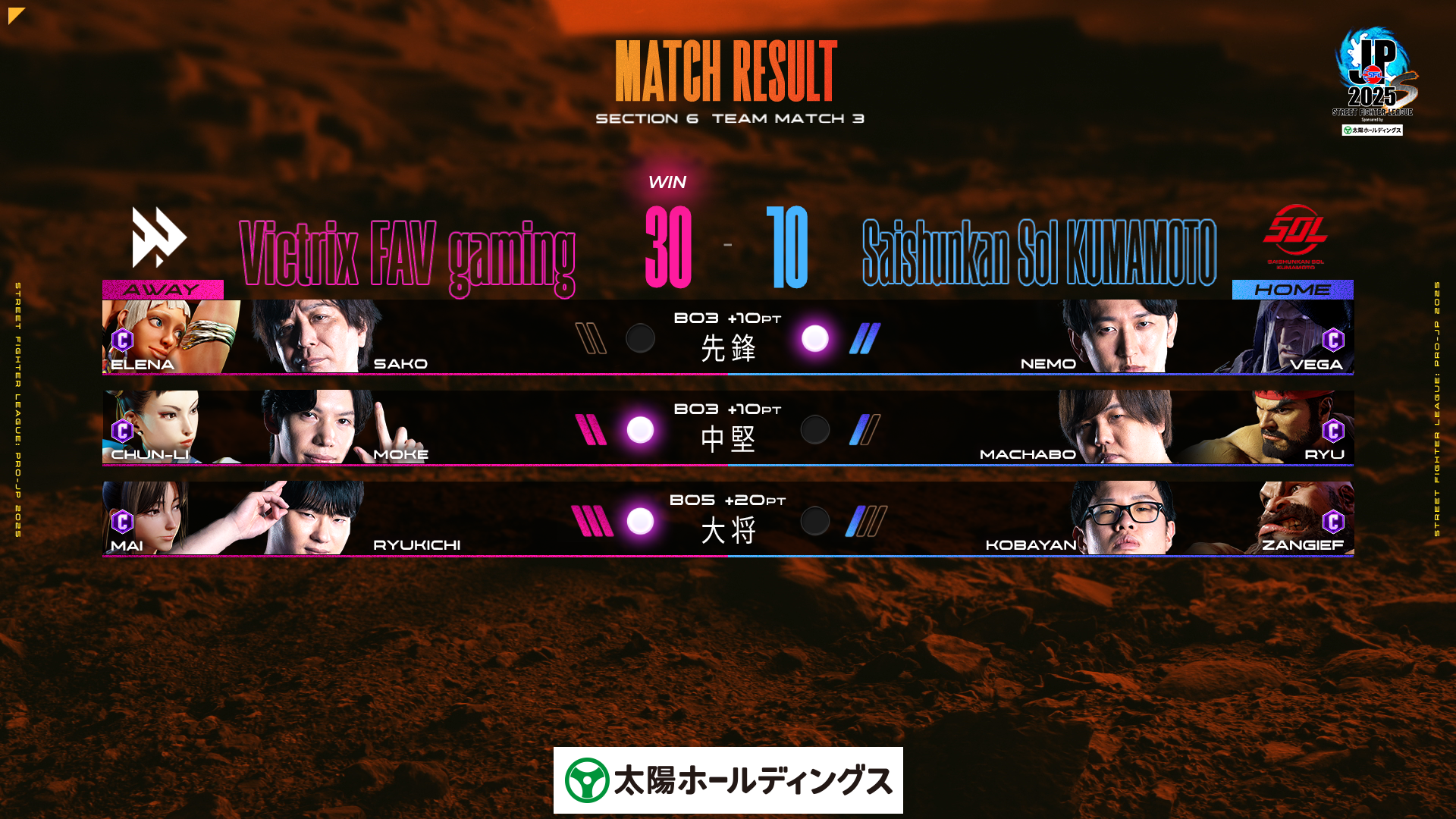 TEAM MATCH 3:【AWAY】Victrix FAV gaming vs Saishunkan Sol 熊本【HOME】
