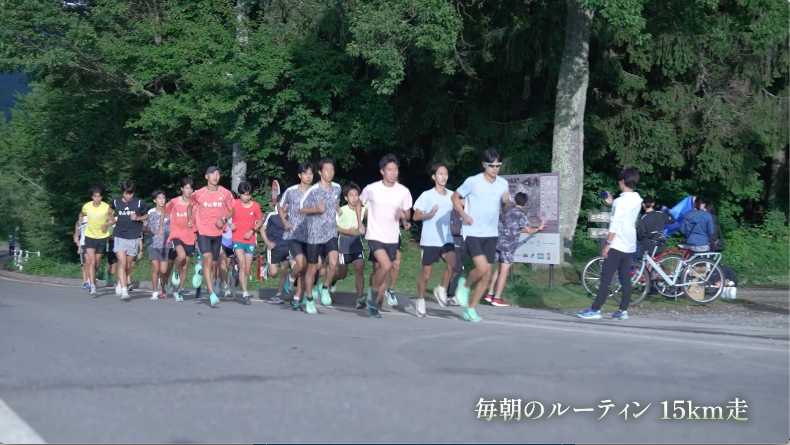 合宿中の練習に密着。毎朝5時の15km走から始まり、柔軟ストレッチによる体のメンテナンスなど。坂道を全速力で駆け上がる、坂道ダッシュは圧巻です。