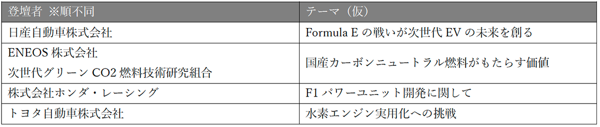 ⽇産Formula E, Honda F1 パワーユニット,トヨタ⽔素エンジン開発の基調講演を実施!!