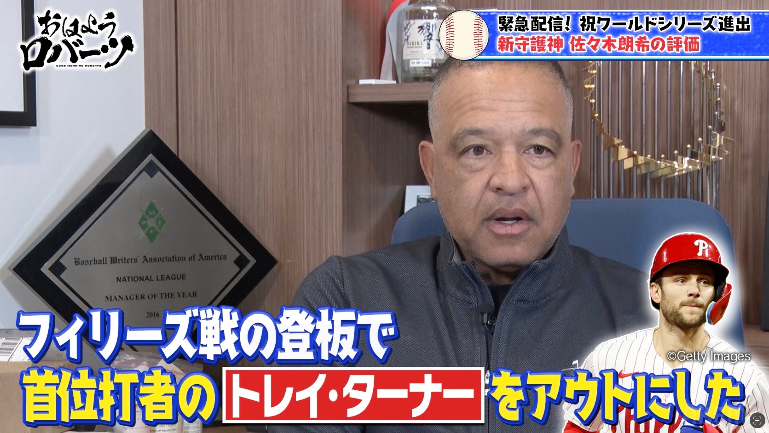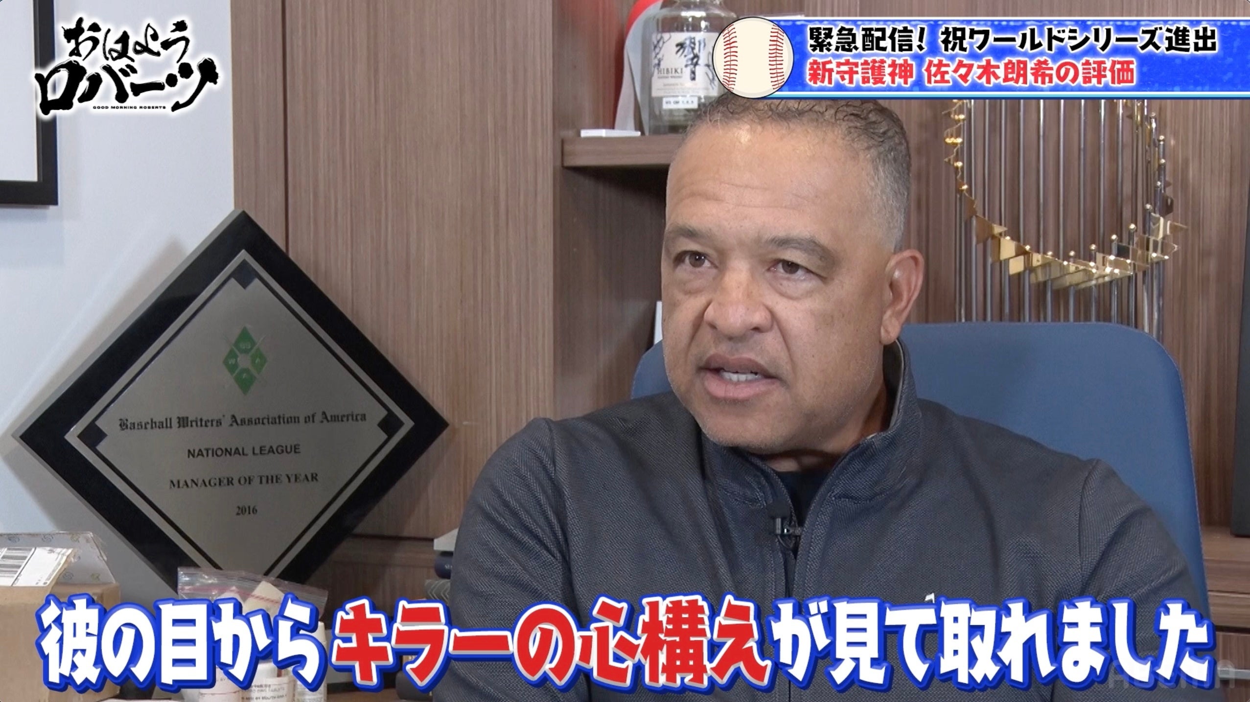 インタビュー後編では、ポストシーズンで圧巻の投球を見せた佐々木朗希選手にフォーカス。ロバーツ監督は「朗希はキラーだ」「フィリーズ戦の登板で首位打者のトレイ・ターナーをアウトにした」「彼の目からキラーの心構えが見て取れました」と評価。「彼にはキラー的な精神がなかったが成功によって今それが芽生え始めています」と、内面の成長に着目したコメントも飛び出しました。