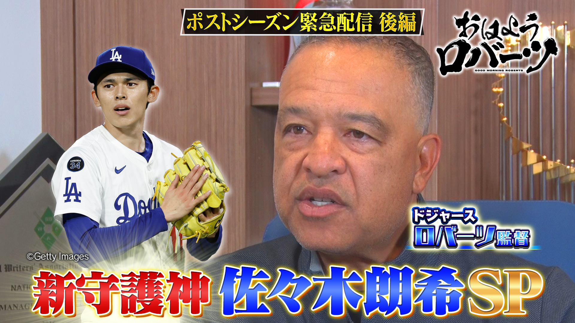 本配信回では、ナ・リーグ優勝決定シリーズ第3戦の試合直前(10月17日)のロバーツ監督を直撃。大谷翔平選手、佐々木朗希選手の起用やポストシーズンの裏側、ワールドシリーズへの覚悟が語られました。