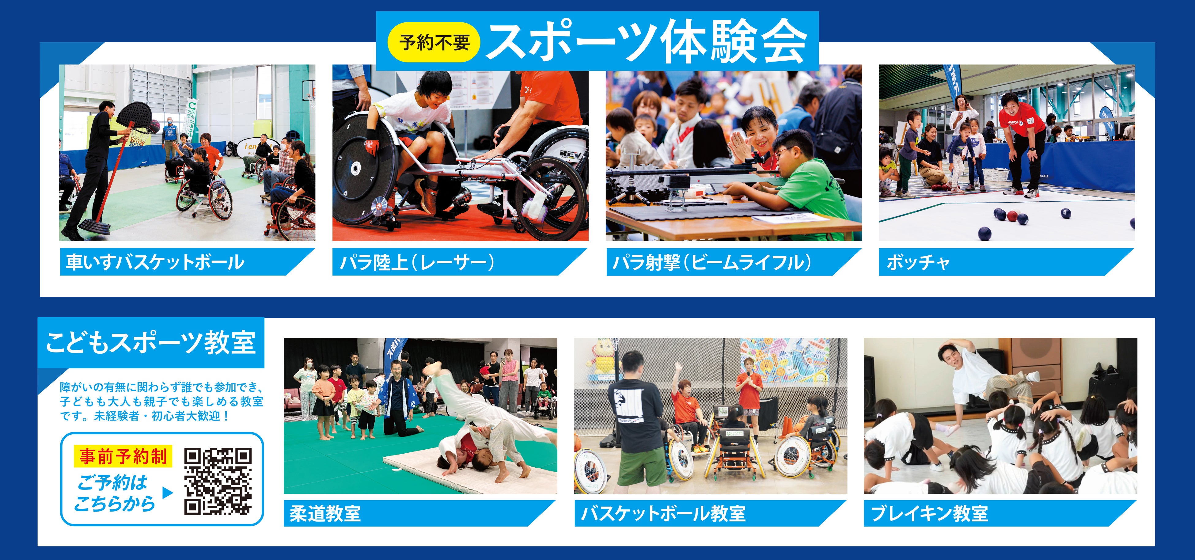 アスリートと交流ができるスポーツ体験や教室のほか、車いすユーザーでもできるように高さを調整したスーパーボールすくい、目が見えなくても音を聞いてできる射的などインクルーシブな工夫が詰まったスポパラ!屋台もあり、だれもがみんなで楽しめるイベントを目指しています。