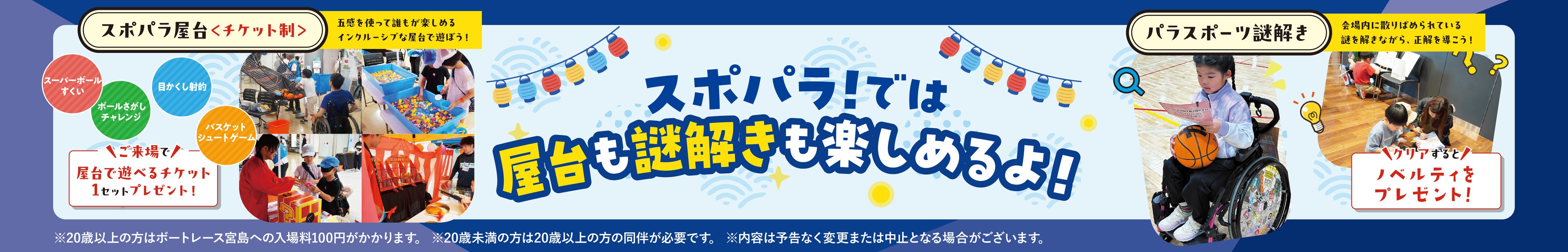 全国のボートレース場は、ボートレース場を「地域に開かれた場所」とするべく、近年、特に子供のための活動に力を入れており、2023年10月からは、障がいのある人もない人も一緒に混ざり楽しむことができるイベント「スポパラ!」を開催しています。