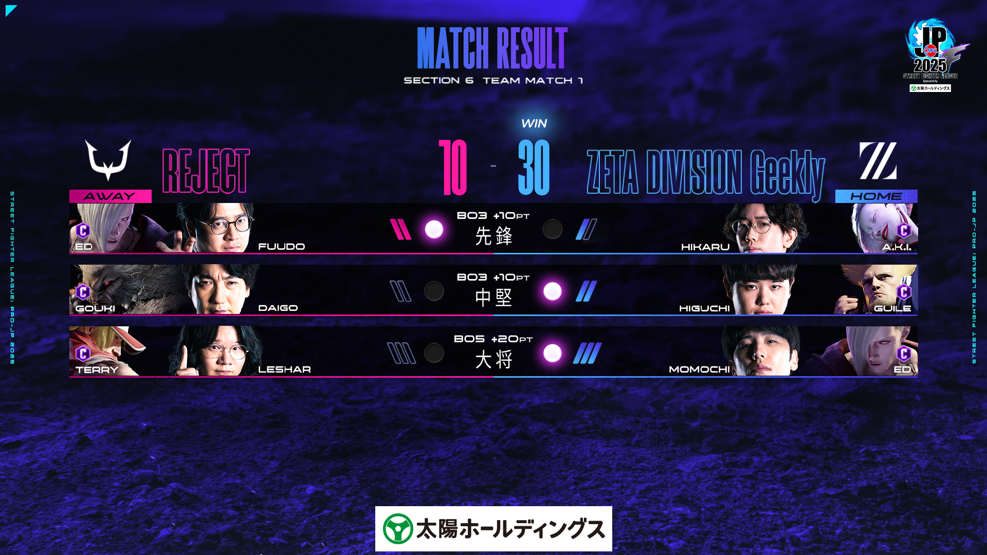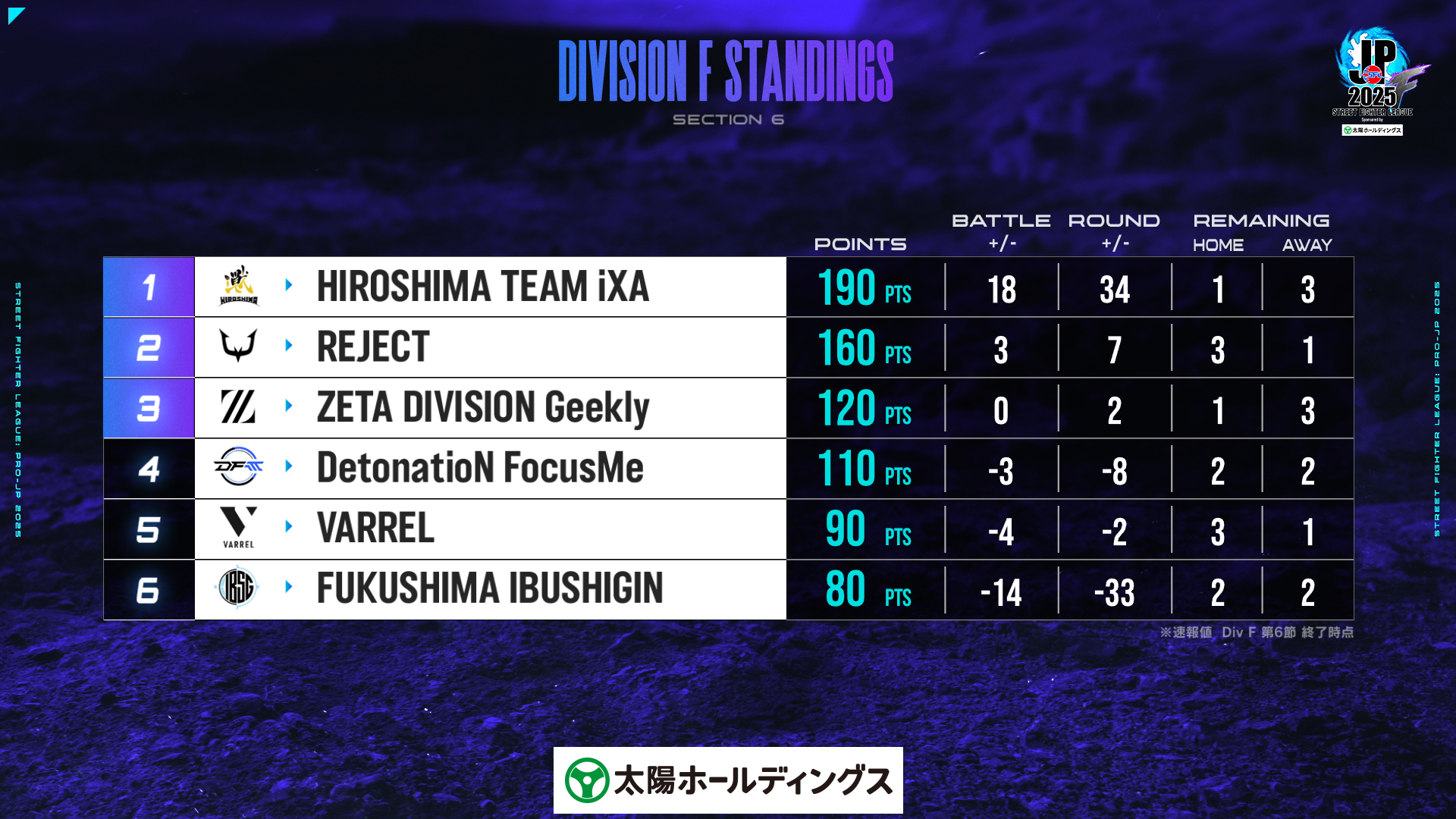 10月24日(金)に行われた「ストリートファイターリーグ: Pro-JP 2025 Division F 第6節」の試合速報をお知らせいたします。