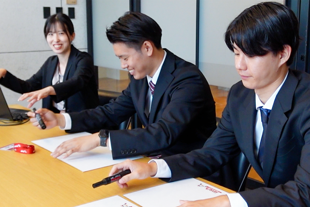 式典後には、トップアスリートの『挑戦と継続』の精神から、ビジネスパーソンとしての成長マインドセットを学ぶ機会として、内村航平氏と内定者による特別勉強会を実施しました。内定者一人ひとりがこれまで継続してきたことや、社会人として挑戦したいことをボードに記し、その思いを発表しました。