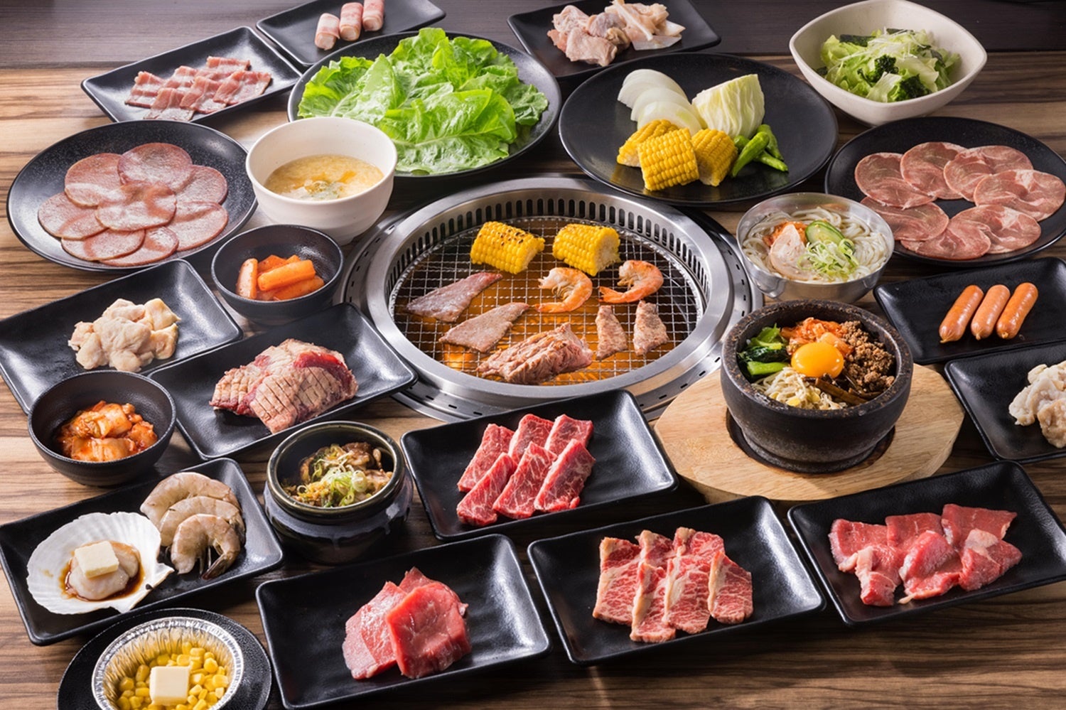 厳選された上質なお肉の食べ放題が魅力のカルビ大将。1番人気の大将コースは「大将カルビステーキ」や「中落カルビ」などのお肉や海鮮の「イカ焼き」、さっぱりとした「梅しそ冷麺」など140品以上の豊富なラインアップ。全コース幼児無料、小学生半額、60歳以上は550円引きなので、家族でもお得に食べ放題を堪能できます。
