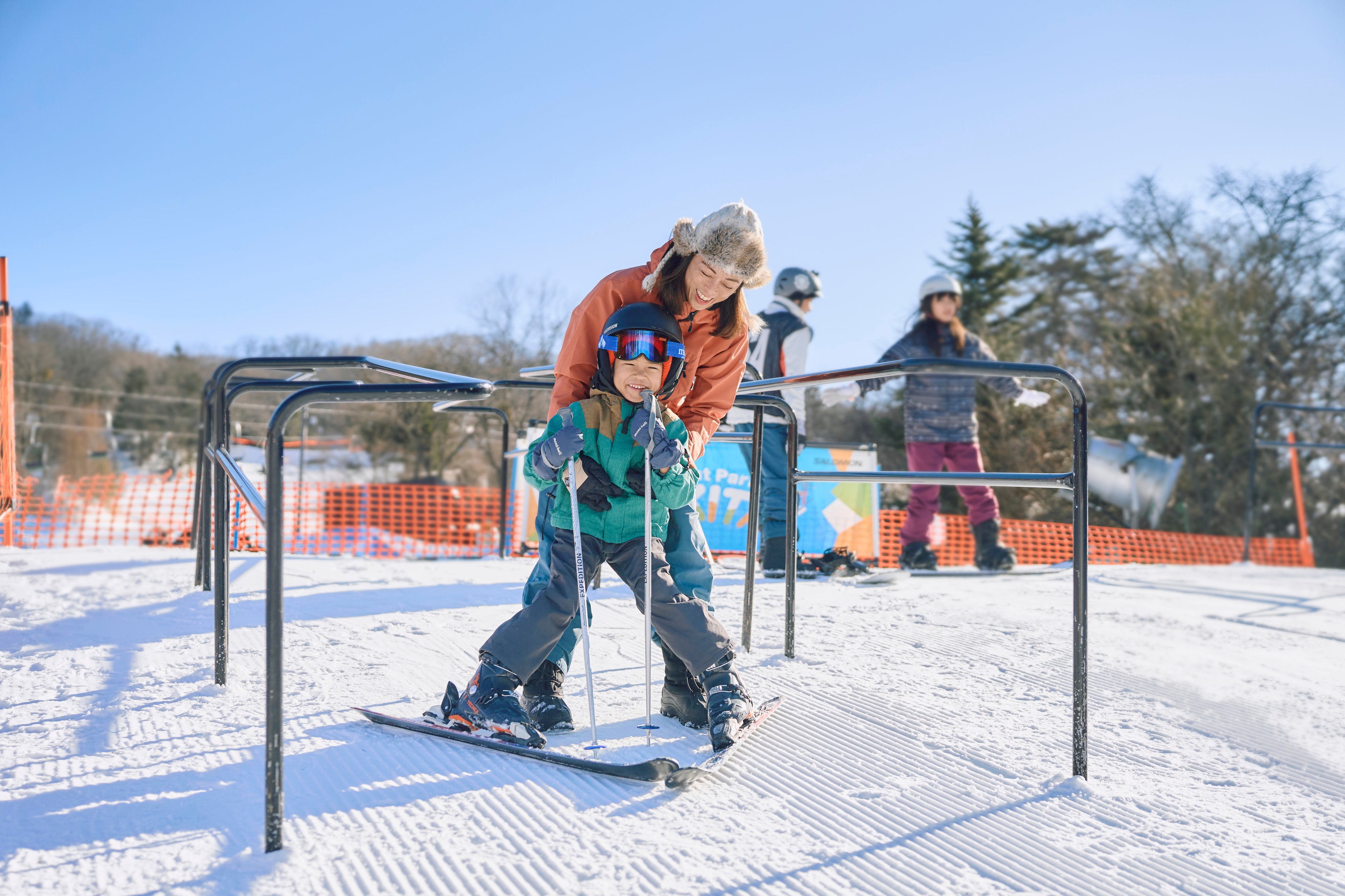 昨シーズン、日帰りエリア、ウエストエリアに新設した小学生以上の未経験者が対象の「デビューパーク」を、今シーズンはイーストエリアにも増設します。「デビューパーク」ではリフトの乗り方から滑り方までを幅広くサポートし、初めての方でもハンドレールを活用することで安全にスキー・スノーボードを覚えることができます。