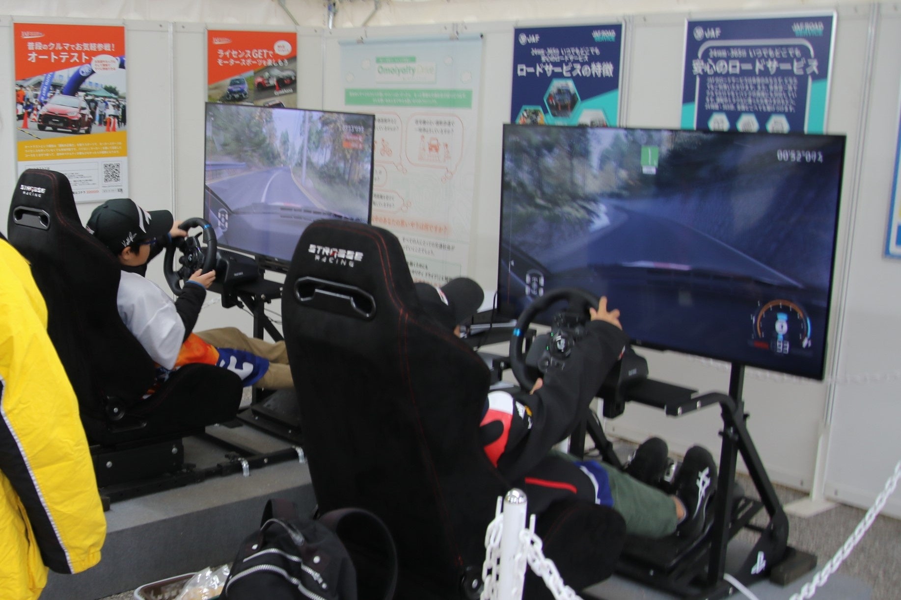 JAFブースではレーシングシミュレーターをはじめ、大人から子どもまで楽しめるさまざまな体験型コンテンツを準備しています。