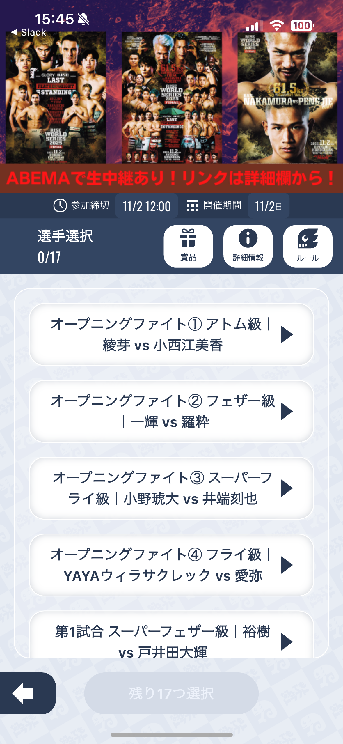 なんドラでは、いよいよ今週末に開催される「RISE WORLD SERIES 2025 FINAL」をよりお楽しみいただくため、オープニングファイトを含む全17試合を対象に予想企画を開催中です!