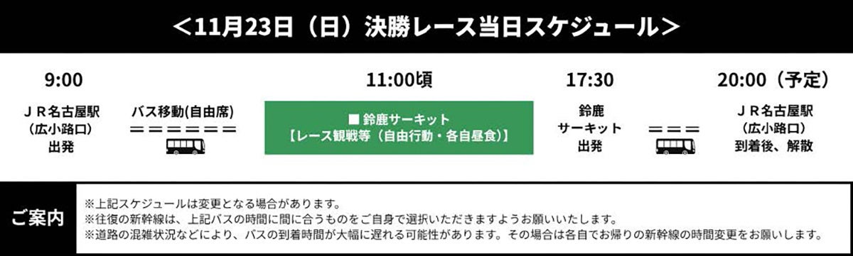 11/23(⽇) 第12戦決勝レース観戦 らくらく送迎バスプラン