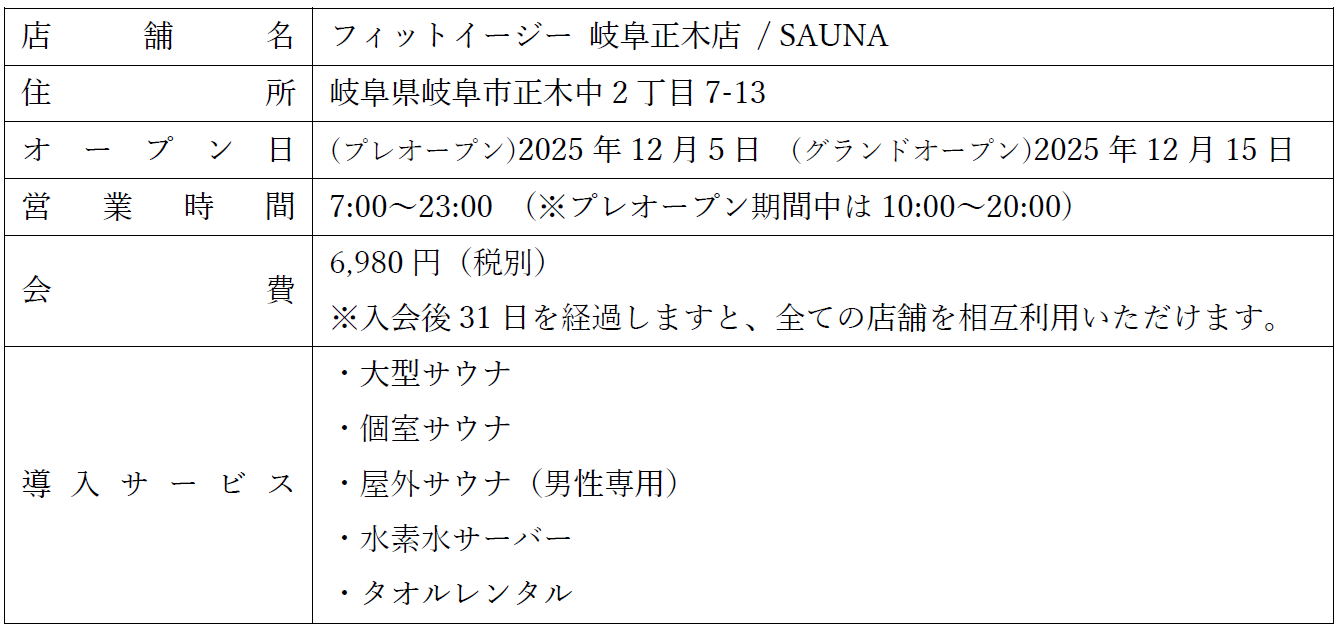 この度、⾼まるサウナ需要とライフスタイルの多様化に対応するため、フィットネスの枠を超えた新たな出店形態としてサウナ特化型店舗を開発し、出店が決定しましたので、お知らせいたします。