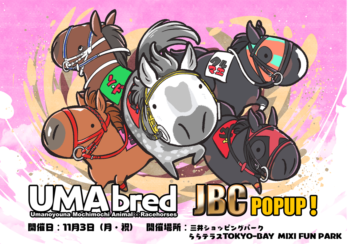 実在の競走馬・引退馬を「UMA」(ウマのようなモチモチアニマル)として描きおろすグッズブランド「UMAbred」は11/3(月・祝)よりららテラス TOKYO-BAY MIXI FUN PARKにて新規ラインナップグッズのPOPUPを開催いたします。