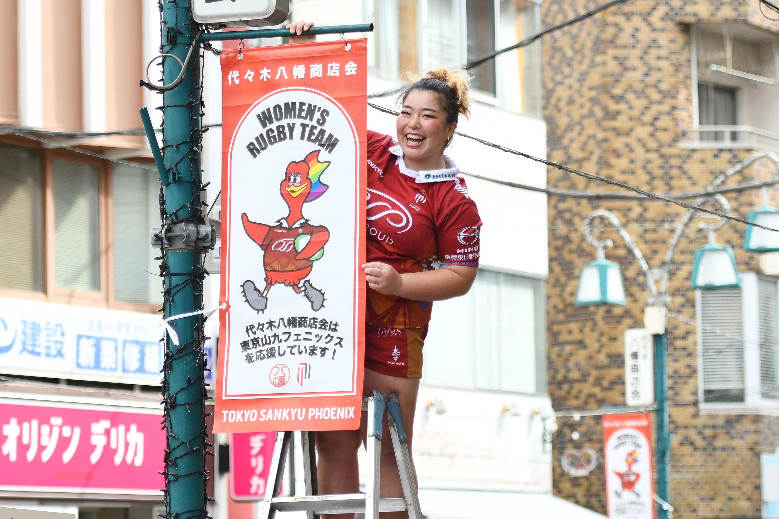 2025年11月1日(土)10:00、女子ラグビーチーム 東京山九フェニックスは、ホームタウンとする渋谷区の代々木八幡商店街にチームフラッグを掲出しました。