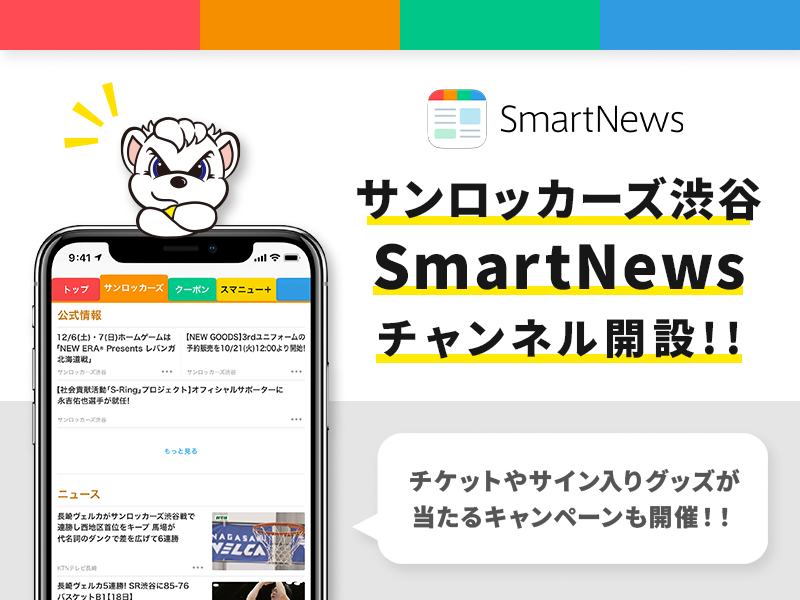 このたび、サンロッカーズ渋谷は、日本最大級のニュースアプリ「SmartNews」内に、「サンロッカーズ渋谷チャンネル」 を開設しました。