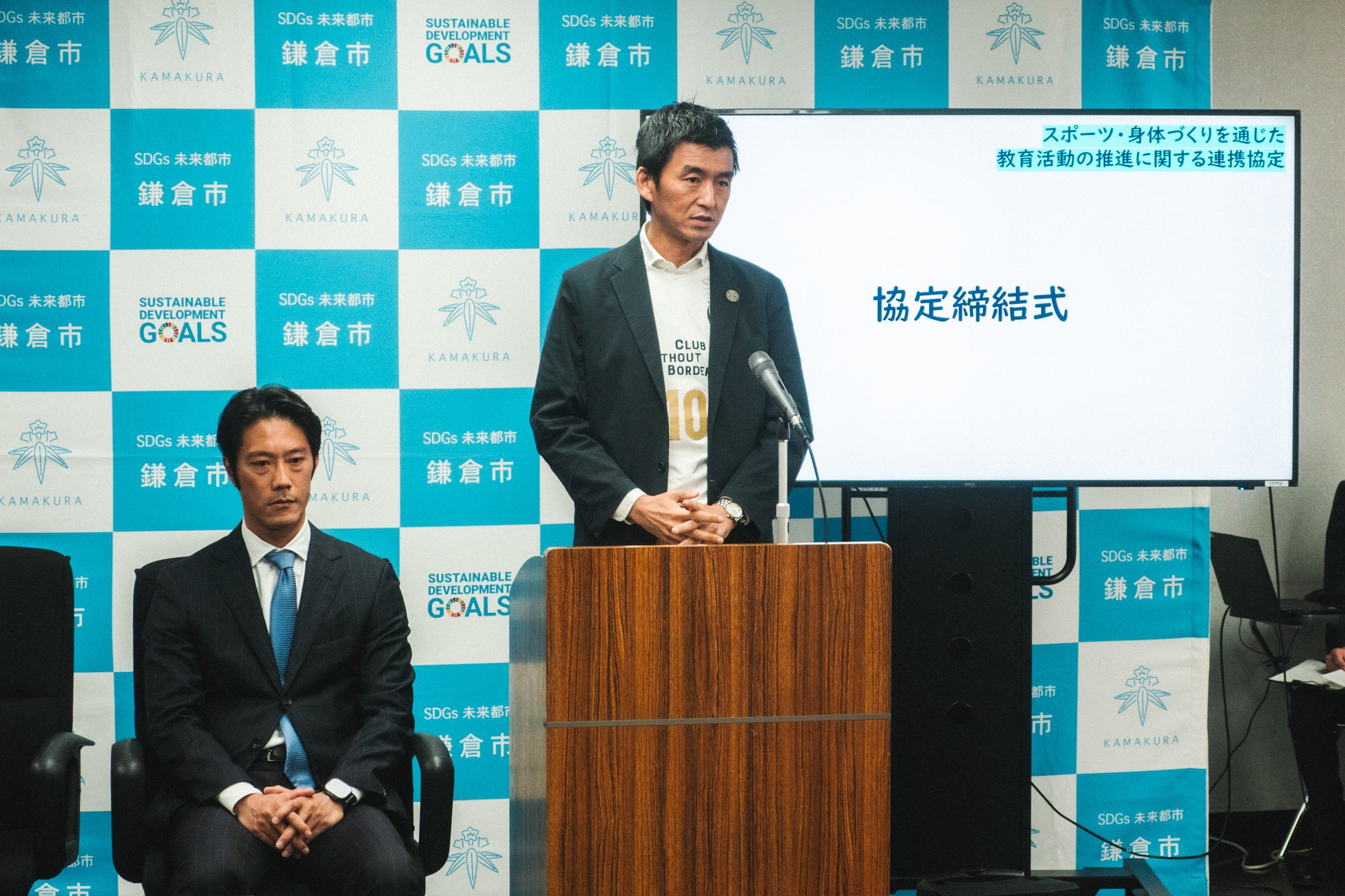 今回、教育活動におけるスタジアムの利用、スポーツ・身体づくりを通じた学びなど、持続可能な教育活動の実践についての提案を鎌倉市教育委員会に行い、市の教育活動への寄与を期待されて連携協定の締結に至りました。