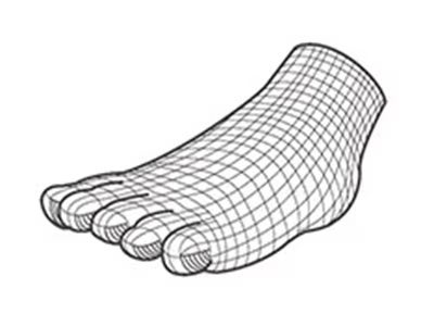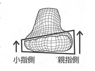 左右別立体:親指側は高く、小指側は低い“非対称”つま先で、指先の圧迫やシワを抑制。