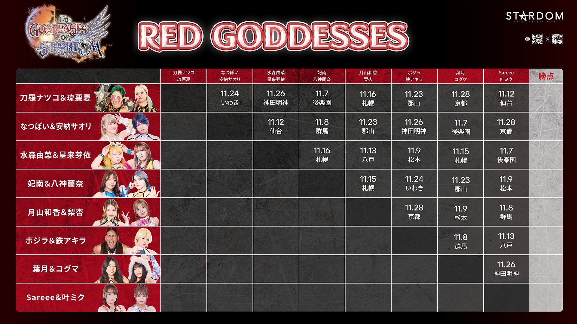株式会社ブシロード(本社:東京都中野区、代表取締役社長:木谷高明)のグループ会社であり、新日本プロレスリング株式会社(本社:東京都中野区、代表取締役社長:棚橋弘至)のグループ会社である株式会社スターダム(本社:東京都中野区、代表取締役社長:岡田太郎)は、『第15回 ゴッデス・オブ・スターダム ~タッグリーグ戦~』に向け、2025年11月4日(火)に記者会見を実施したことをご報告いたします。
