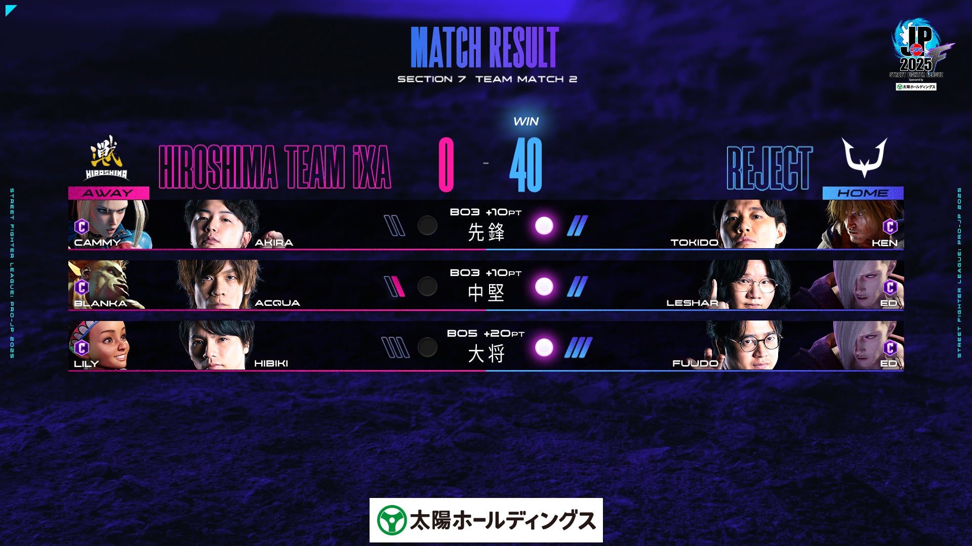 TEAM MATCH 2:【AWAY】広島 TEAM iXA vs REJECT【HOME】